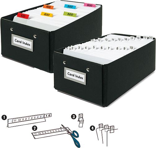 Kartenreiter sind eine einfache und effektive Lösung für das Organisieren von Dokumenten, Berichten, Hängemappen und Computerausdrucken. Aus unzerstörbarem Polyester sind die Kartenreiter mit Papiereinlagen in verschiedenen Farben erhältlich. Sie können die Papiereinlagen beschriften. Die Kartenreiter und Papiereinlagen können leicht mit einer Schere zugeschnitten werden.
