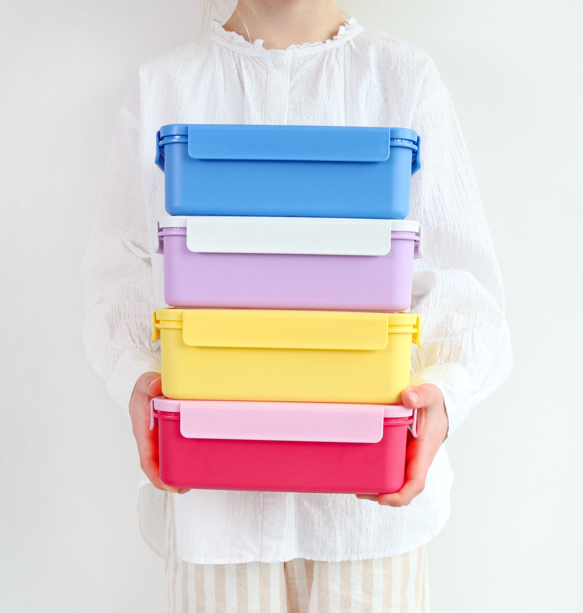 Der luftdichte Klick- und Schließdeckel sowie das herausnehmbare Bento-Fach mit zwei Fächern sorgen für ein perfekt organisiertes Mittagessen. Eine ideale Box für ein frisches und abwechslungsreiches Mittagessen in der Schule oder unterwegs.