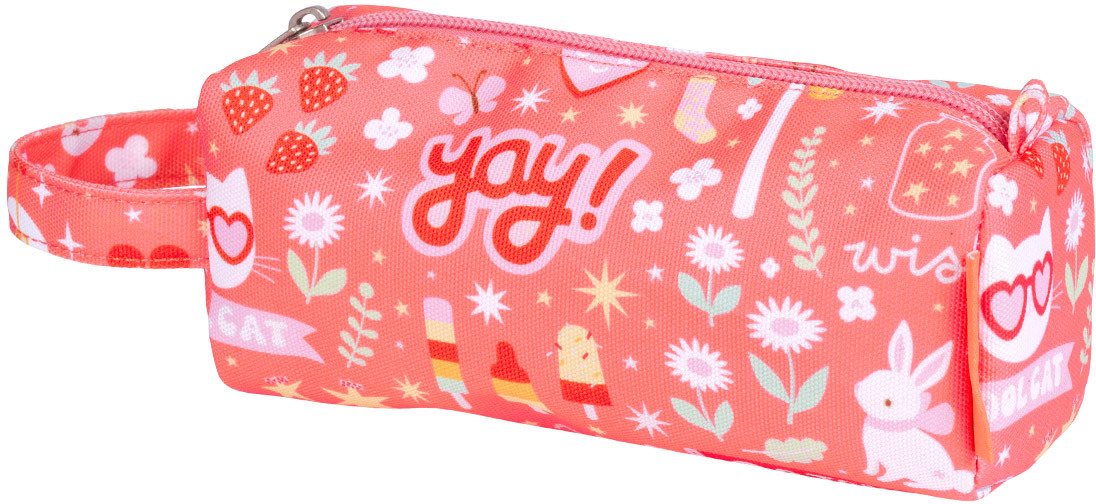 Das geräumige, korallenrosa Federmäppchen mit dem fröhlichem Fun Design ist ideal für den Schulweg. Das Mäppchen ist gefüttert und hat einen praktischen Griff zum einfachen Tragen und Aufhängen.