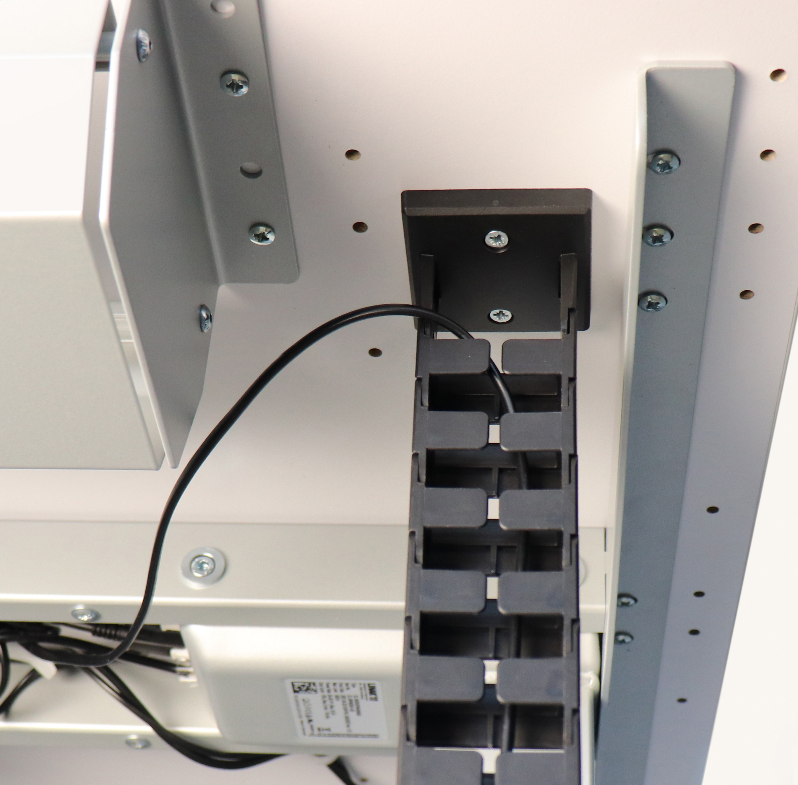 Die magnetische Kabelkette eignet sich ideal für höhenverstellbare Tische, mit Arbeitshöhen von 60-130cm. Der Querschnitt der Kabelführung beträgt B=3,7 cm T=1,5 cm. Die Kabelkette wird mit 2 Schrauben an der Tischplatte befestigt, wobei die Tischplattenstärke mindestens 19 mm betragen sollte. Zudem sind 2 Magnete im Lieferumfang enthalten, um die Kabelkette am unteren Teil der Hubsäule zu befestigen. Mit der Kabelkette können Sie Ihre Kabel sicher und ordentlich führen, ohne dass sie im Weg sind oder beschädigt werden. Die einfache Befestigung an der Tischplatte und Hubsäule macht die Installation schnell und unkompliziert. Mit der magnetischen Kabelkette sorgen Sie für eine saubere Arbeitsumgebung ohne störende Kabel.