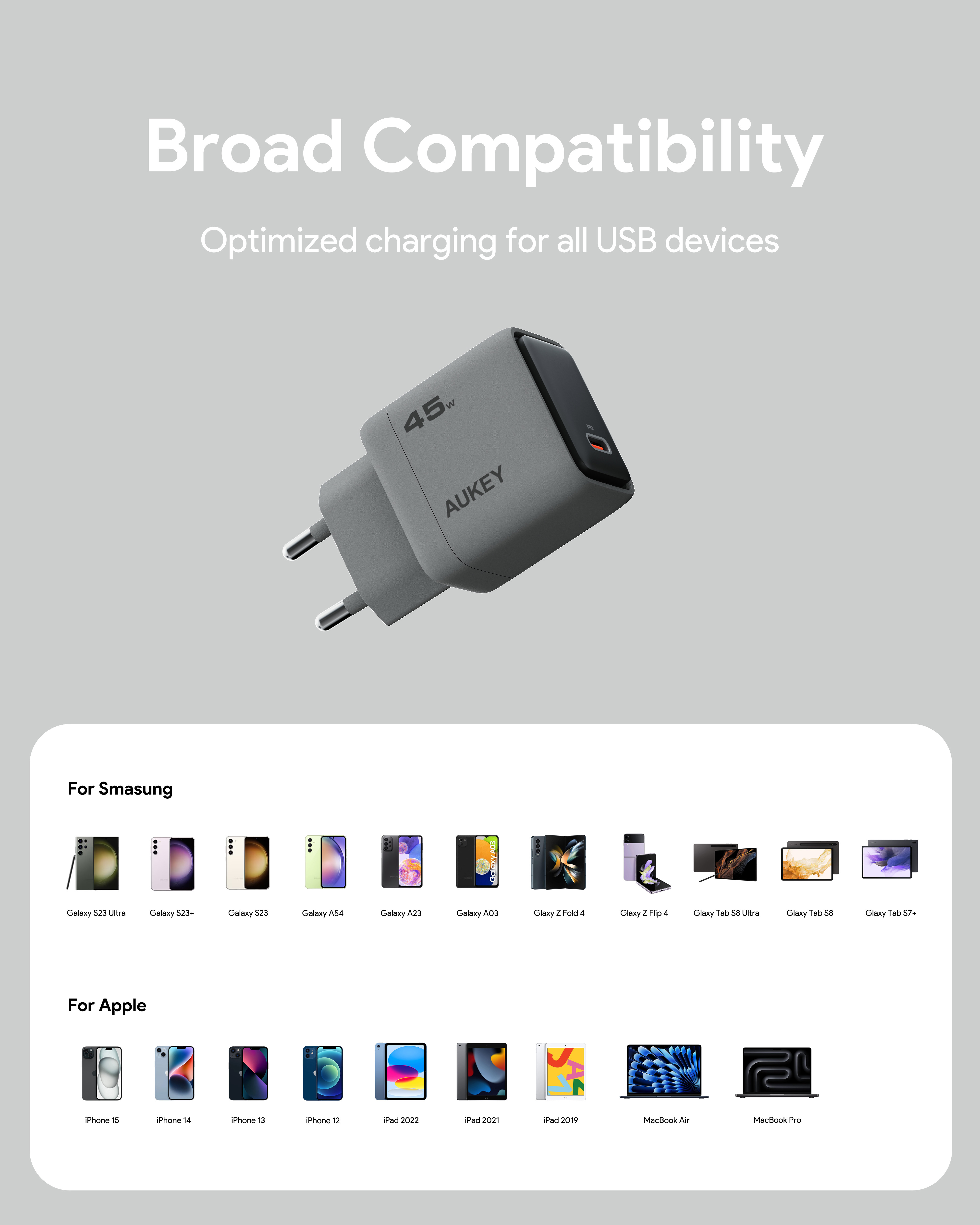Produktinformationen "AUKEY Comet 45W GaN PD PA-C2 1-Port, Wall Charger Grey"