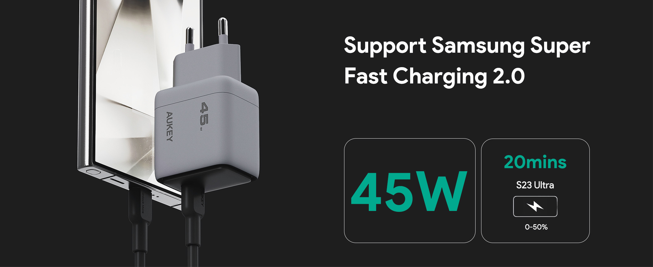 AUKEY Comet 45W GaN PD PA-C2 1-Port, Wall Charger Grey