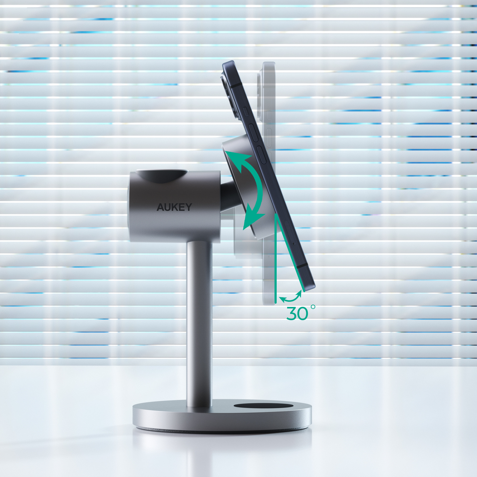 - Das Telefonladegerät ist um 30 Grad verstellbar und eignet sich für verschiedene Betrachtungswinkel.