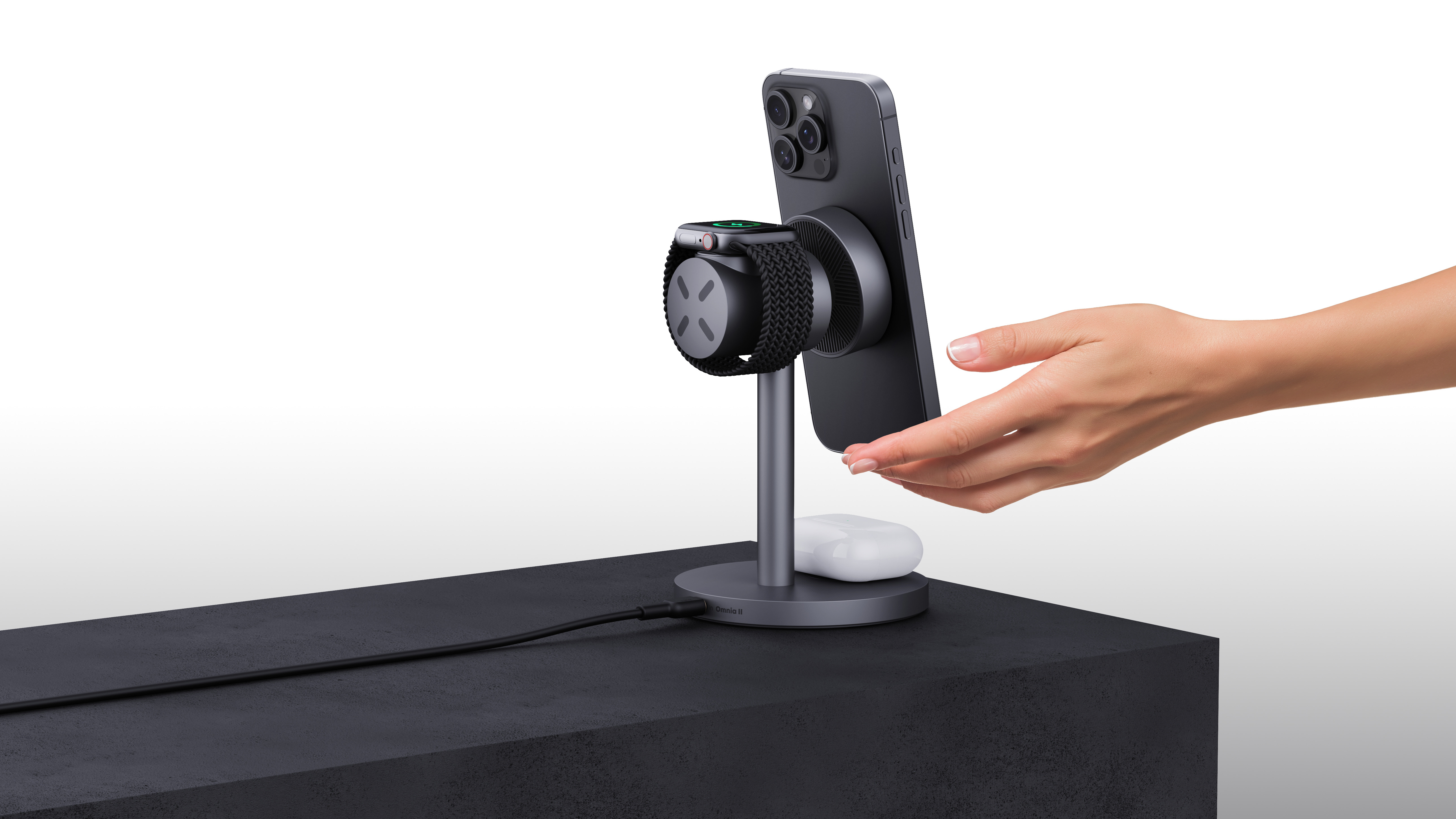 Dieses kabellose Ladegerät wurde speziell für die Bedürfnisse von iPhone-, Air Pods- und Apple Watch-Benutzern entwickelt. Es erübrigt den lästigen Umgang mit mehreren Ladegeräten und Kabeln und sorgt für ein optimiertes Ladeerlebnis für alle Ihre Apple-Geräte. Dieses kabellose Ladegerät ist Qi2-zertifiziert, sodass das Telefonladegerät mit der iPhone 15-Serie kompatibel ist und schnelles kabelloses Laden mit beeindruckenden 15 W für iPhone 12 und höher ermöglicht. Es ist in der Lage, ein iPhone 15 Pro in 16 Minuten von 0 auf 20 % aufzuladen, was 65 % schneller ist als ein normales kabelloses Qi-Ladegerät. Das integrierte Uhrenladegerät ist MFW-zertifiziert (gemacht für Watch) und garantiert optimale Leistung und Kompatibilität für Ihre Apple Watch. Es ist in der Lage, die Apple Watch Ultra sowie die Apple Watch 7 und neuere Modelle in 30 Minuten von 0 auf 60 % aufzuladen, während ein Ladegerät ohne Schnellladung nur bis zu 20 % auflädt