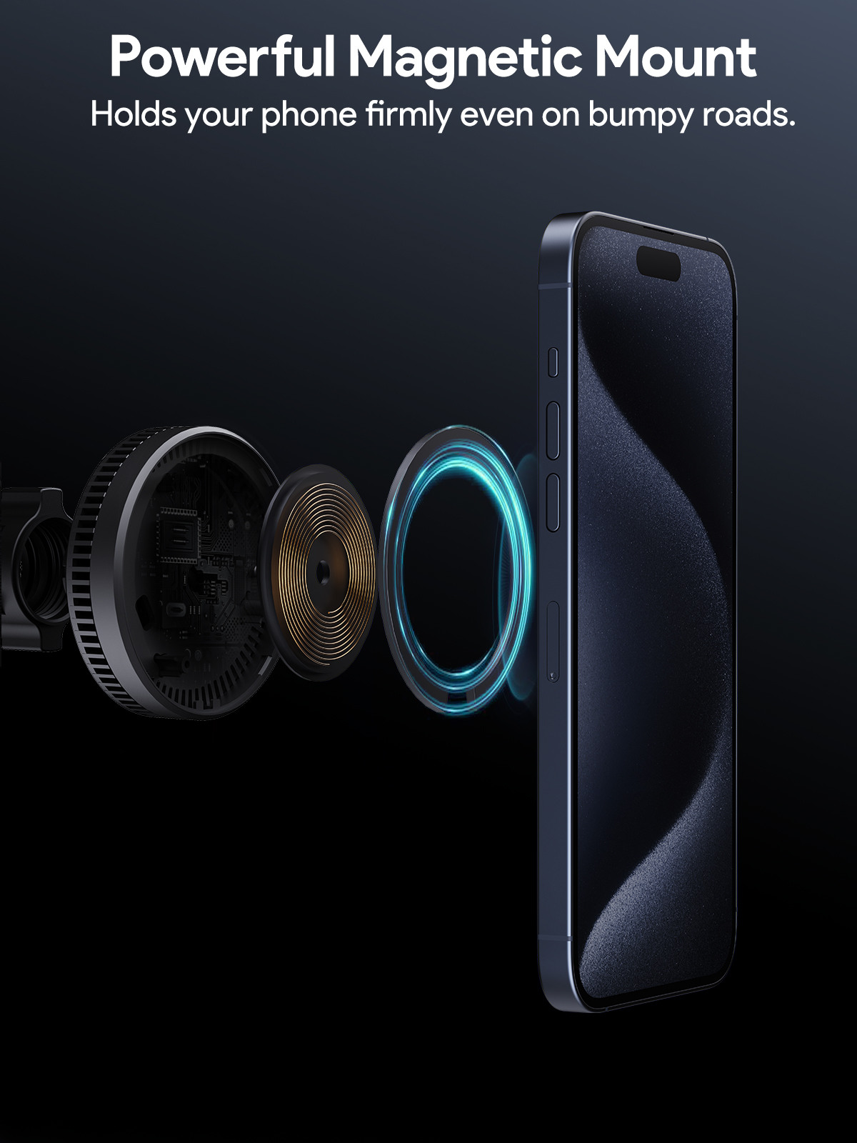 Mit 15 W Qi2-zertifizierter kabelloser Schnellladung lädt es Ihr iPhone schnell und effizient auf. Verfügt über ein sicheres Lüftungshaken-Montagesystem, das Stabilität und eine einfache Installation an jeder Luftausströmung des Fahrzeugs bietet. Die starke magnetische Anziehungskraft sorgt dafür, dass Ihr Telefon auch bei holprigen Fahrten sicher befestigt bleibt, und bietet ein nahtloses Ladeerlebnis. Das aktive Halbleiterkühlsystem verhindert eine Überhitzung während des Ladevorgangs und gewährleistet eine sichere und effiziente Ladeleistung.