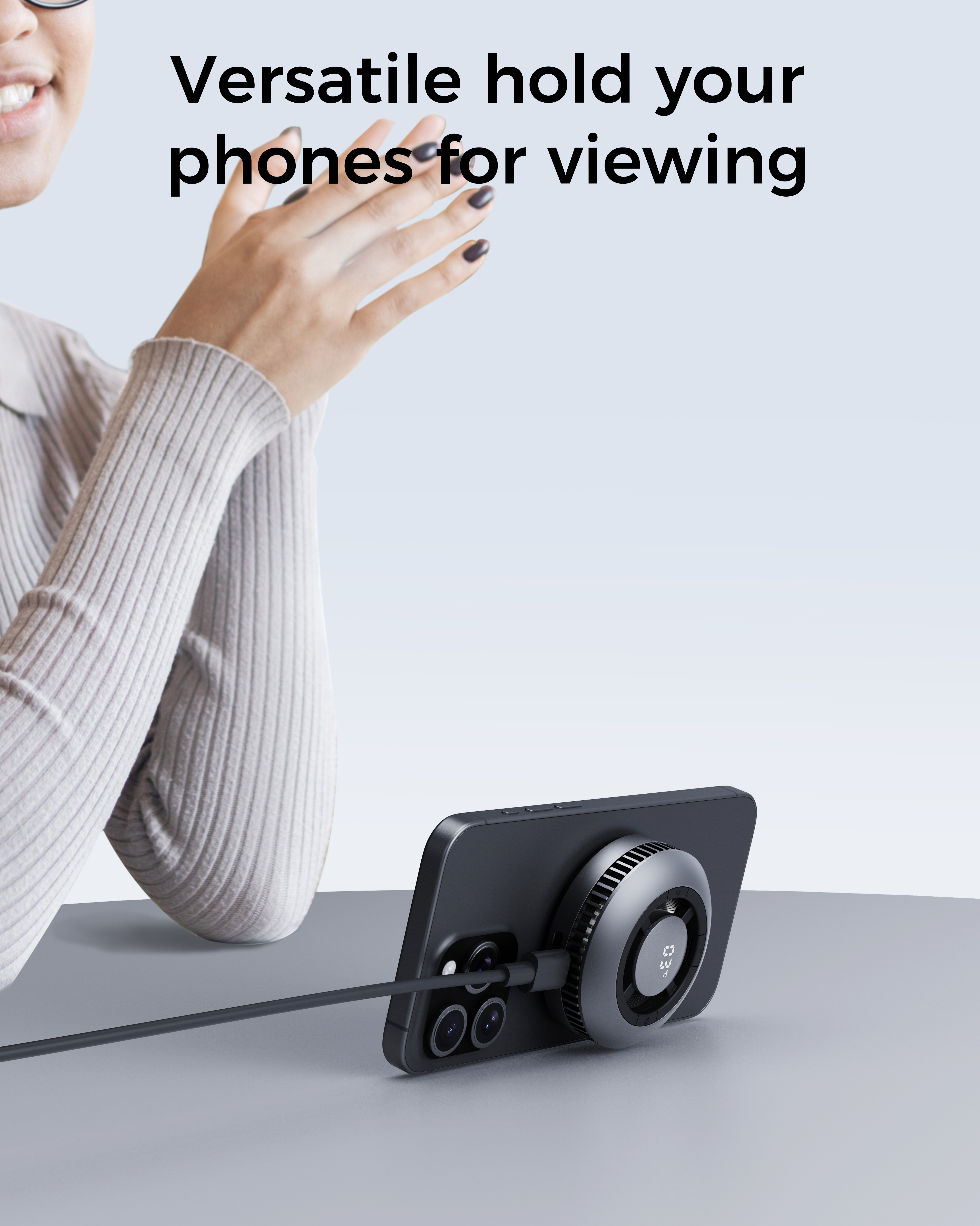 Das Ladegerät bietet eine Qi2-zertifizierte kabellose Schnellladung mit 15 W, die Ihre Geräte schnell auflädt. Überwachung der Oberflächentemperatur in Echtzeit, damit Ihr Gerät während des Ladevorgangs kühl bleibt. Das Ladegerät verfügt über ein starkes aktives Kühlsystem, das eine Überhitzung verhindert und eine optimale Ladeleistung. Der superleise Lüfter sorgt für eine effektive Kühlung, ohne Sie bei der Arbeit oder beim Spielen zu stören und sorgt für eine ruhige Umgebung.