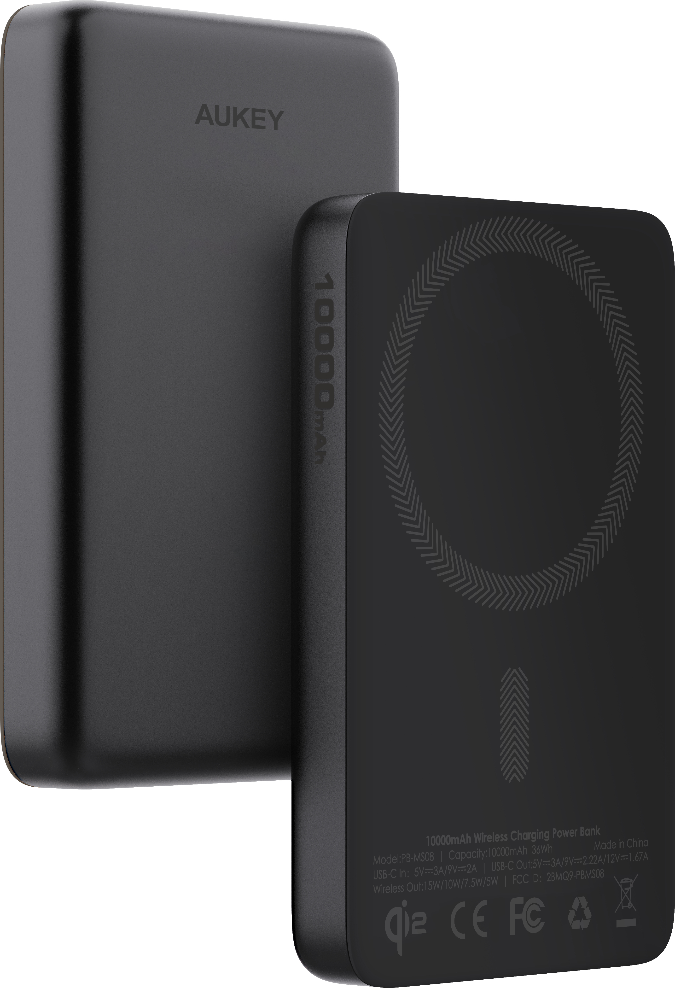 AUKEY MagFusion Slim 10000mAh PB-MS08 BG Powerbank Qi2 Wireless,Black