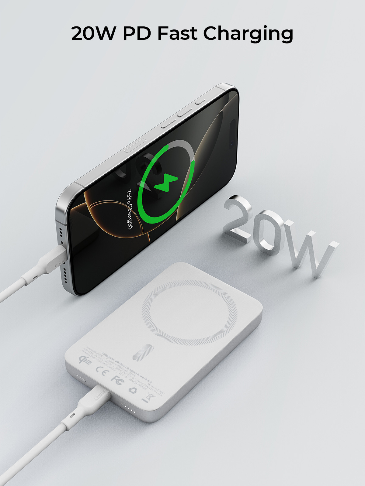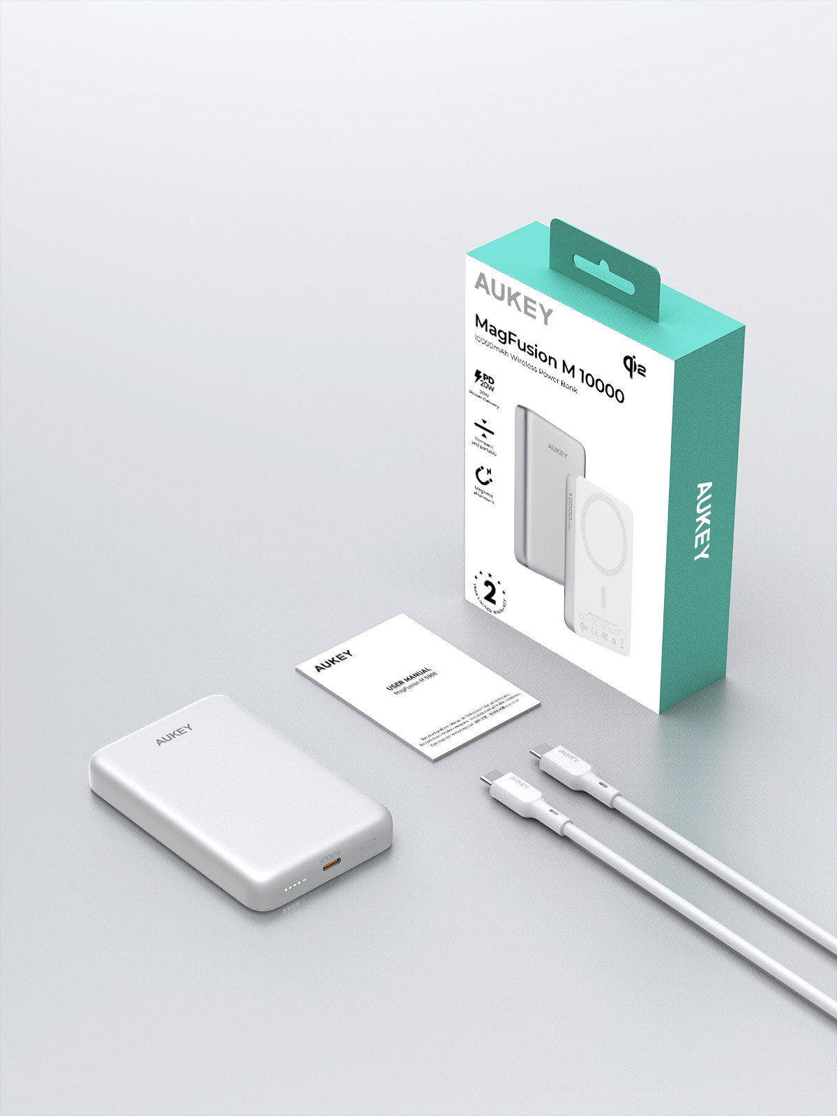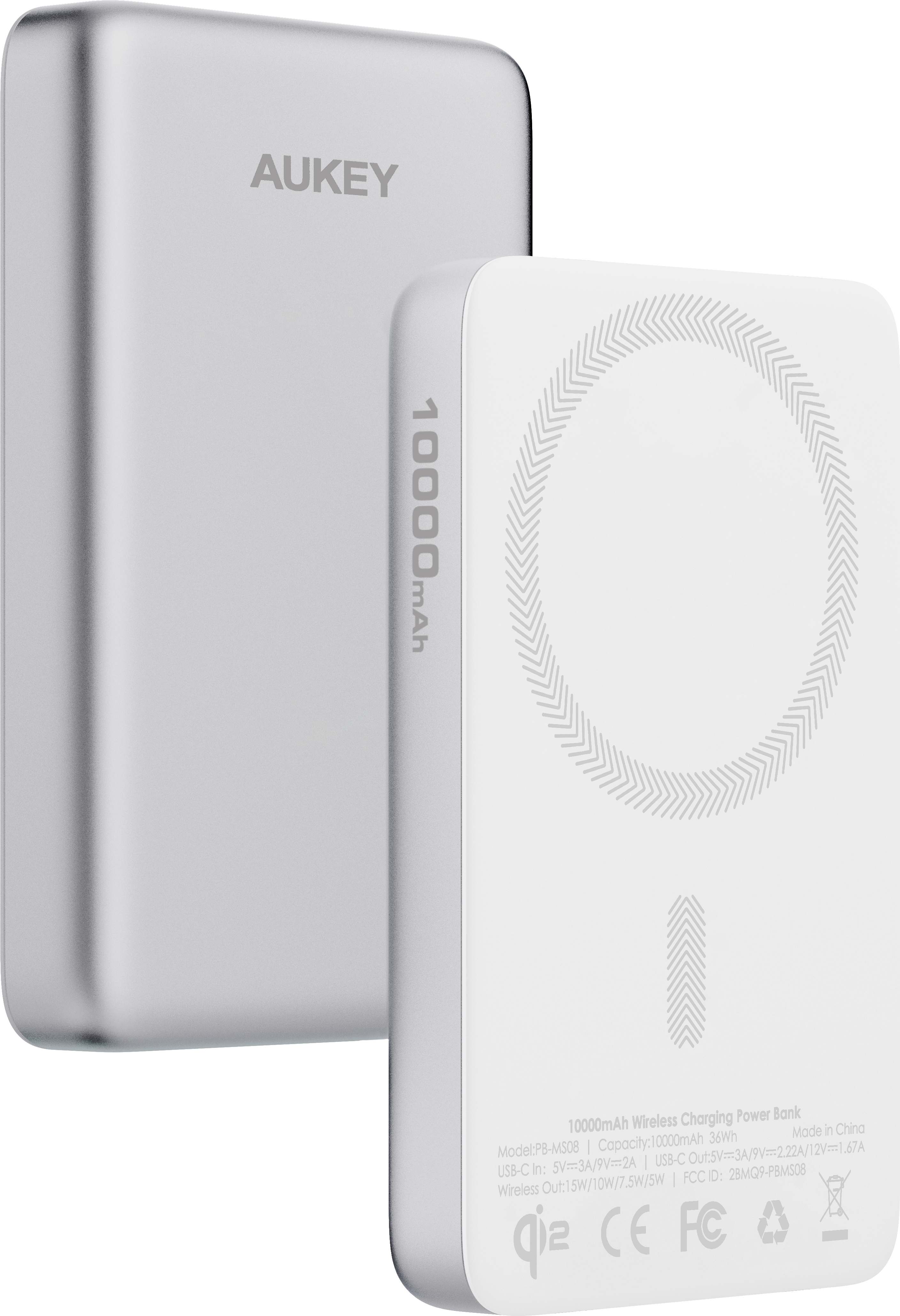 AUKEY MagFusion Slim 10000mAh PB-MS08 SW Powerbank Qi2 Wireless,White
