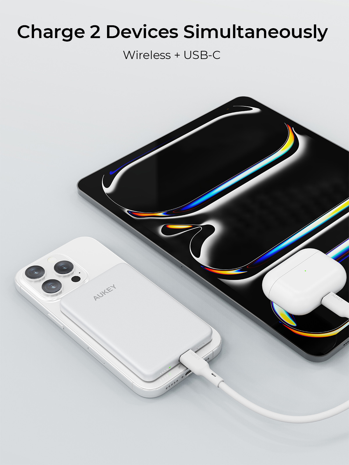 AUKEY MagFusion Slim 5000mAh PB-MS07 SW Powerbank Qi2 Wireless,White