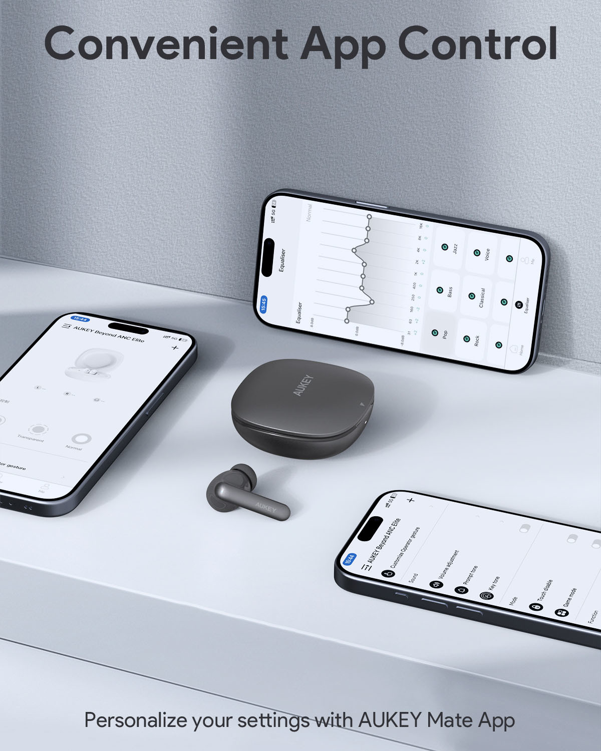 - Passen Sie Ihr Hörerlebnis mit anpassbaren EQ-Einstellungen an.