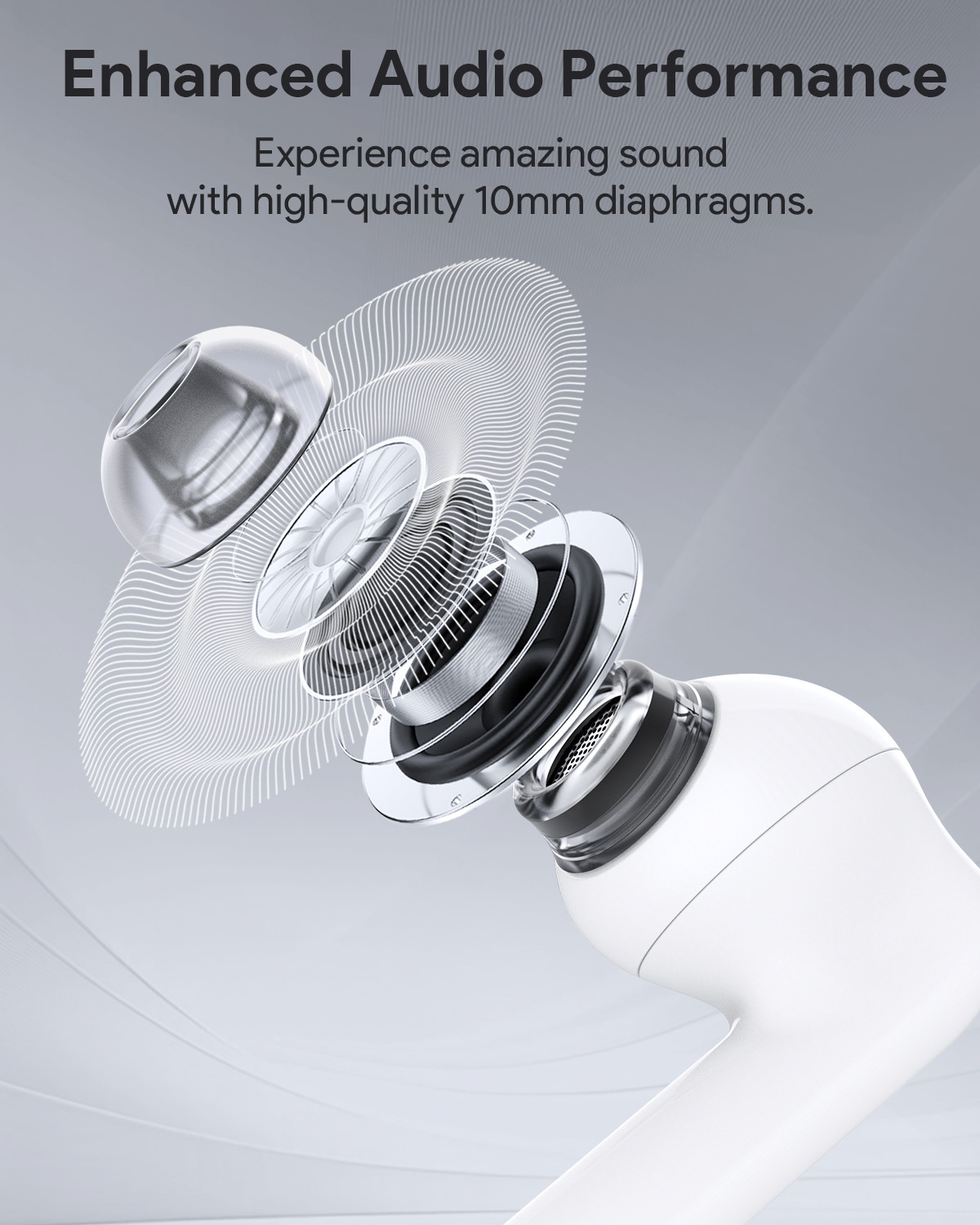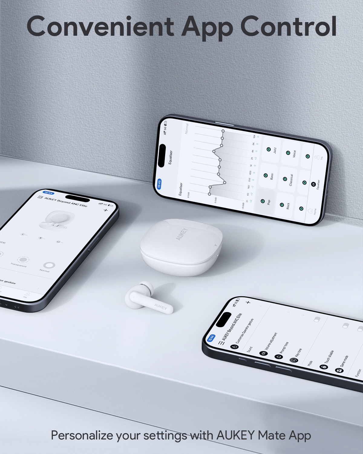 - Passen Sie Ihr Hörerlebnis mit anpassbaren EQ-Einstellungen an.