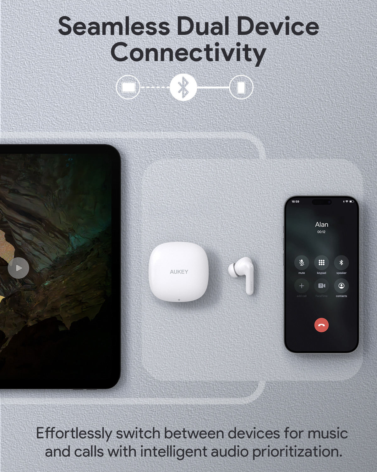 AUKEY Move Portable Earbuds EP-B2 WH TWS, Hybrid ANC White