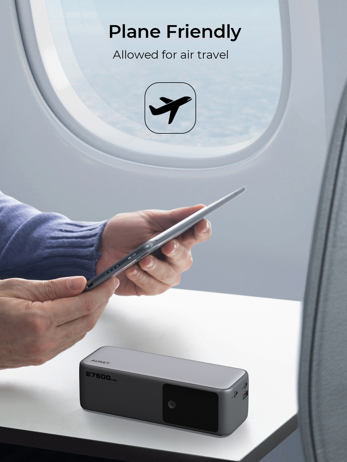 Das ultraschnelle Laden mit 140 W PD3.1 lädt selbst die größten Geräte in kürzester Zeit auf, einschließlich großer Laptops. Darüber hinaus ist diese leistungsstarke Aufladung in beide Richtungen möglich, sodass Sie die enorme Kapazität der Powerbank von 27.600 mAh schneller auffüllen können, als Sie es sich vorstellen können. Diese Powerbank wurde für größtmögliche Kompatibilität entwickelt und kann zum Aufladen sogar des leistungsstarken MacBook Pro 16 Zoll sowie einer Vielzahl anderer Laptops, Tablets, Telefone und anderer Geräte verwendet werden. Halten Sie alle Ihre Geräte aufgeladen, unabhängig von Marke oder Modell. Behalten Sie mit dem hellen und gut lesbaren Digitaldisplay den Überblick über alle Aspekte des Ladefortschritts. Behalten Sie mit der einzigartigen, von AUKEY entwickelten Benutzeroberfläche den Überblick über jedes Detail, einschließlich Ladestatus, verbleibende Akkulaufzeit und Warnmeldungen.