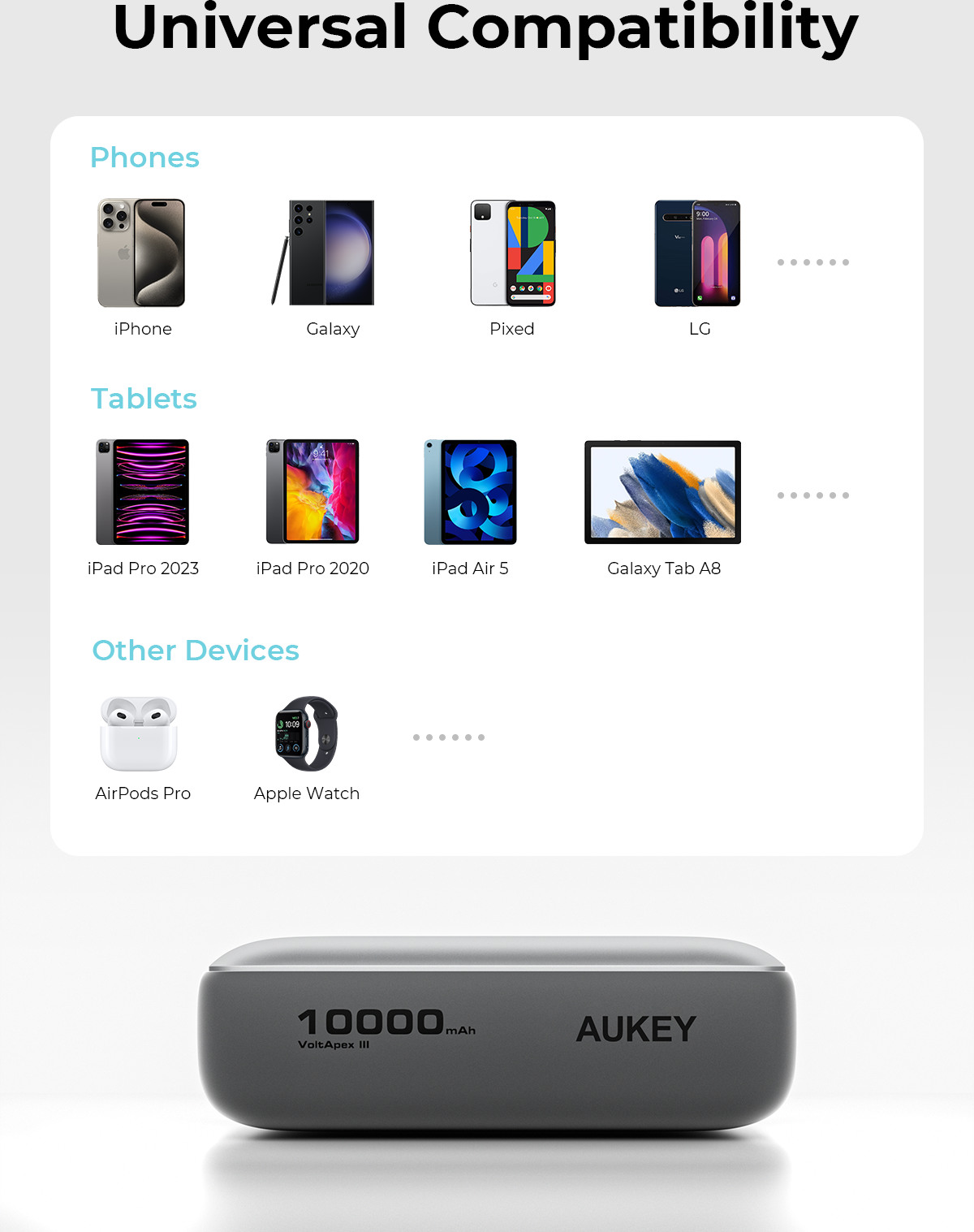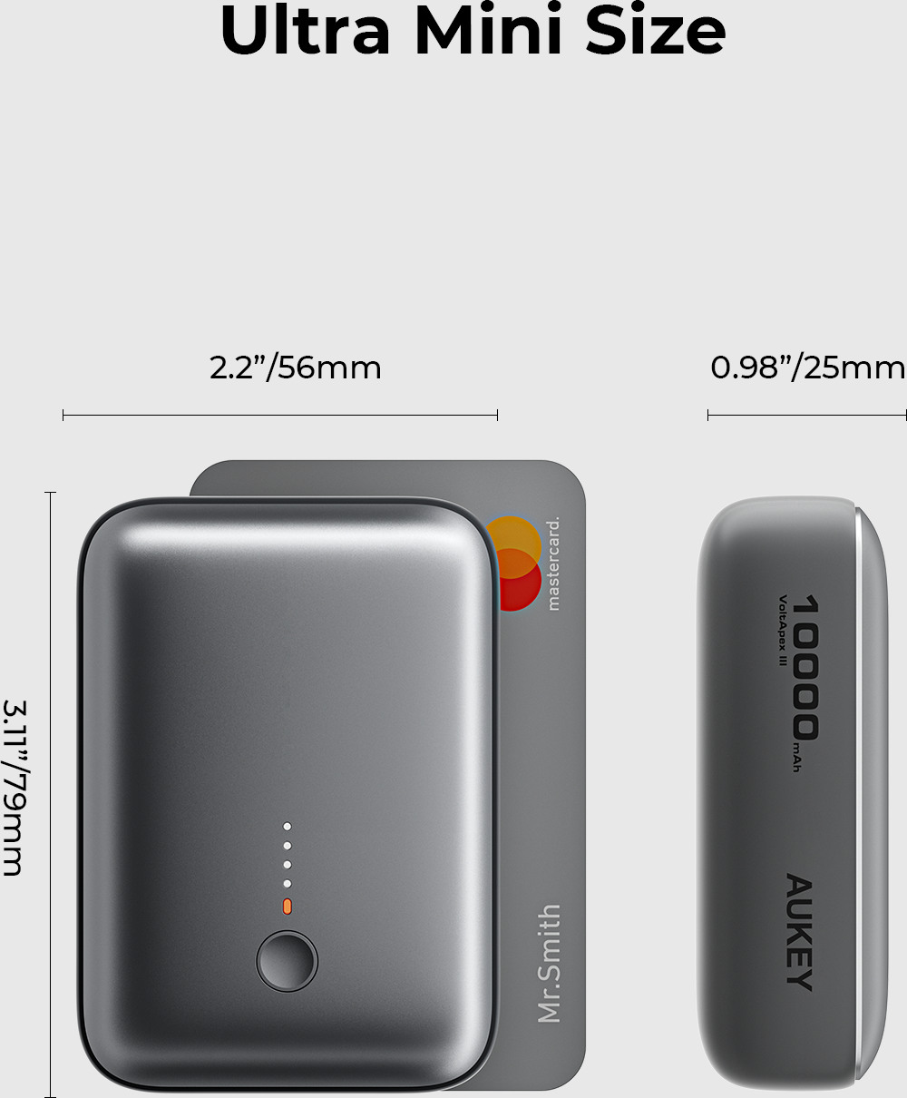 AUKEY Spark Mini 10000, 20W, PD,QC PB-Y55 GR Powerbank,Gray,USB-C,USB-A