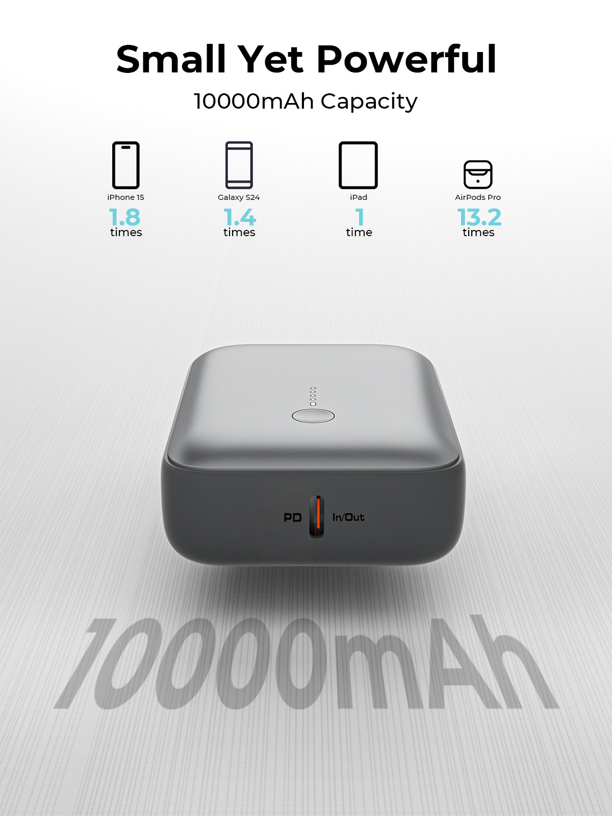 - Hohe Kapazität: Trotz ihrer kompakten Grösse verfügt diese Powerbank über eine beeindruckende Kapazität von 10000 mAh, mit der Sie die meisten Smartphones mehrfach aufladen können, bevor Sie die Powerbank selbst aufladen müssen.