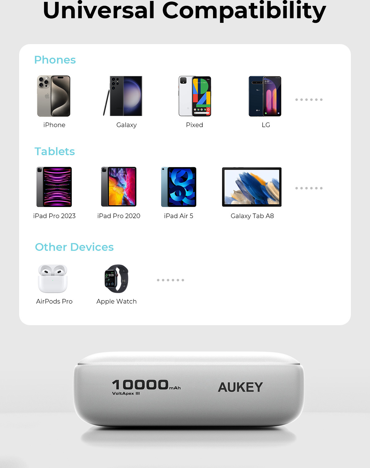 AUKEY Spark Mini 10000, 20W, PD,QC PB-Y55 WH Powerbank,White,USB-C,USB-A