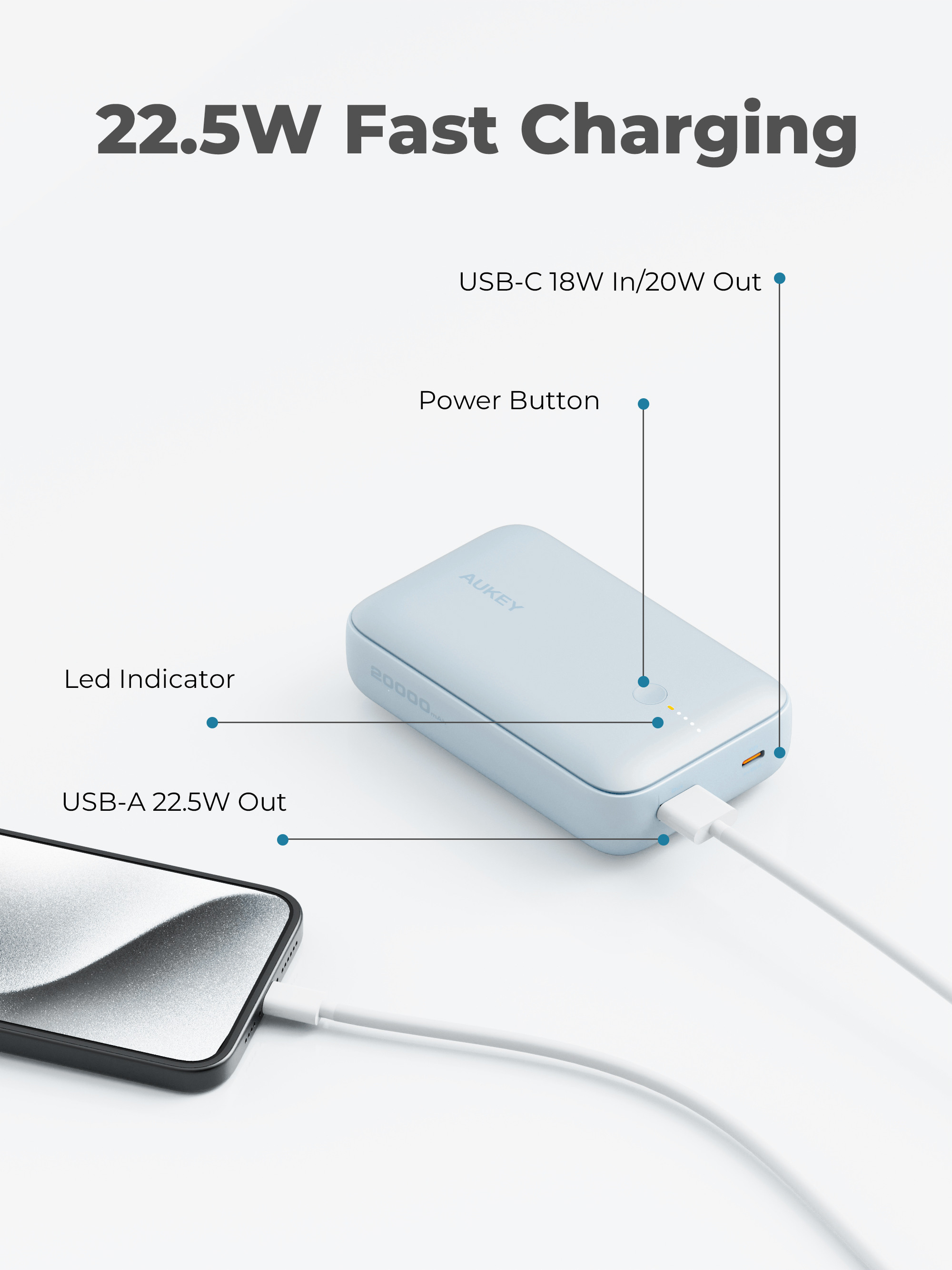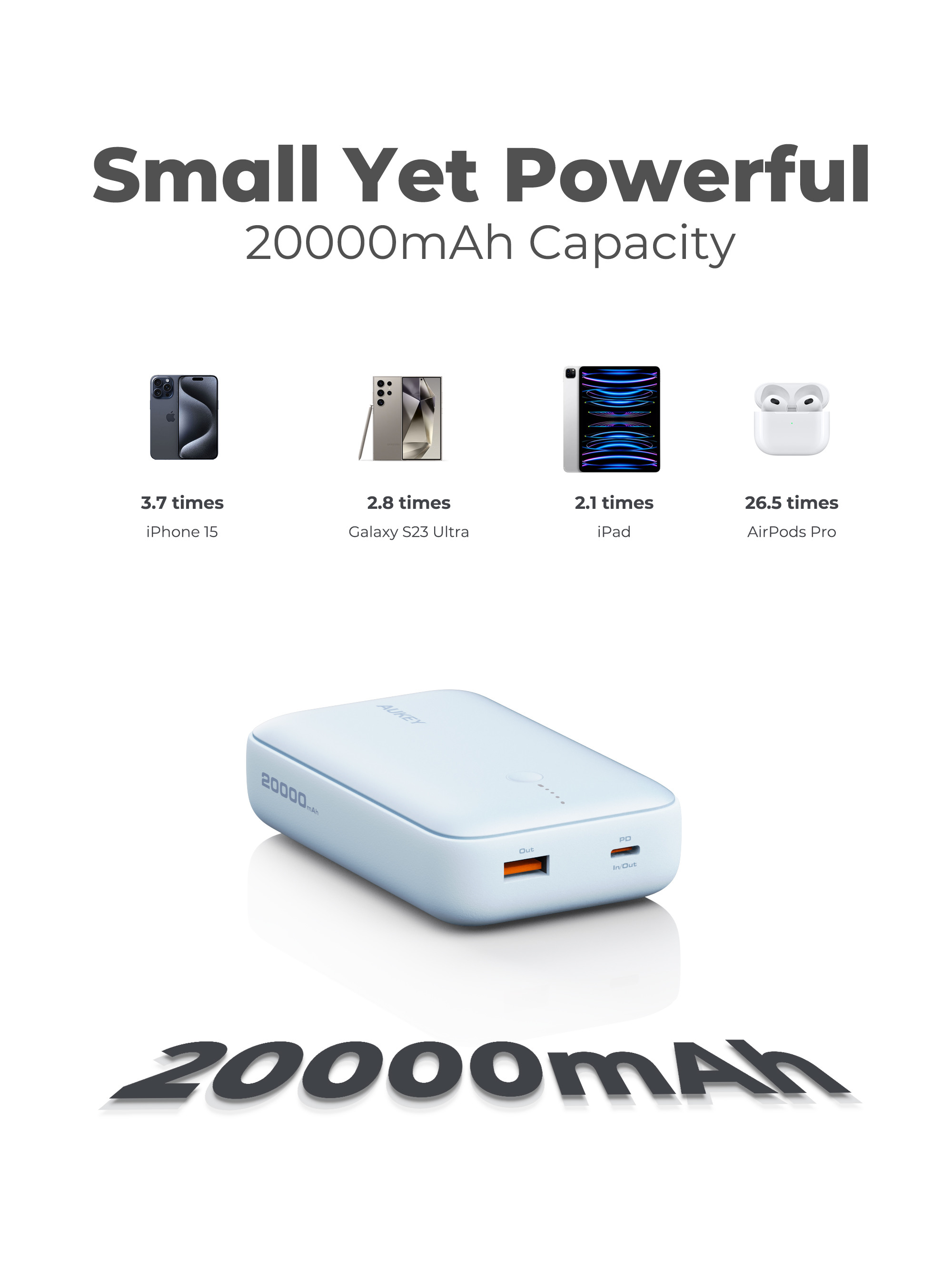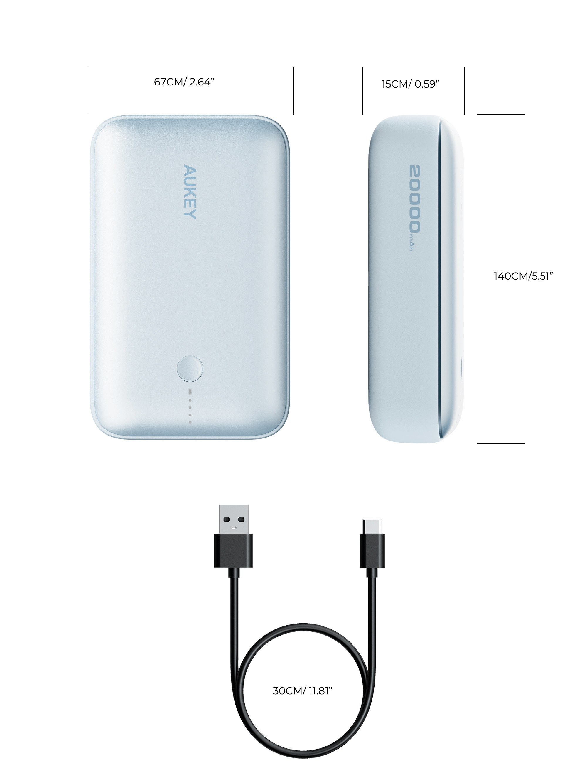 AUKEY Spark Mini 20000, 20W, PD,QC PB-Y57 BL Powerbank,Blue,USB-C,USB-A