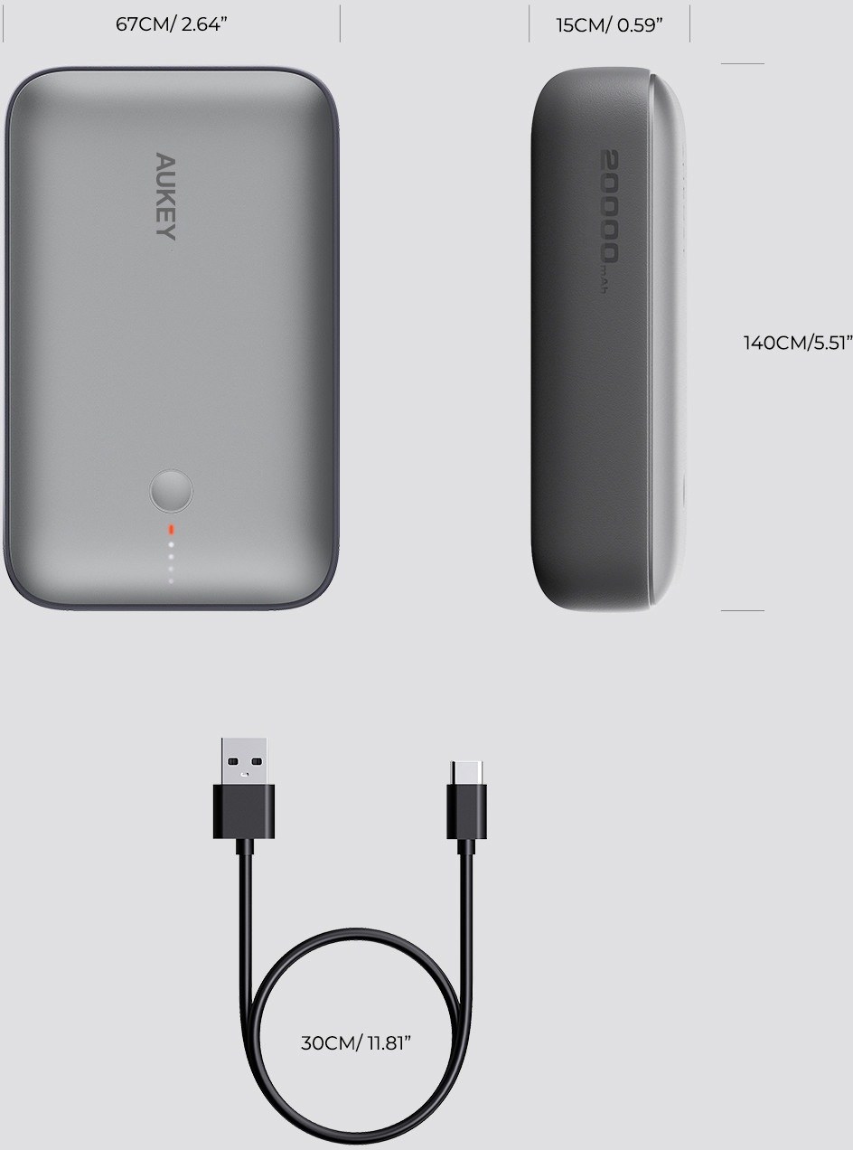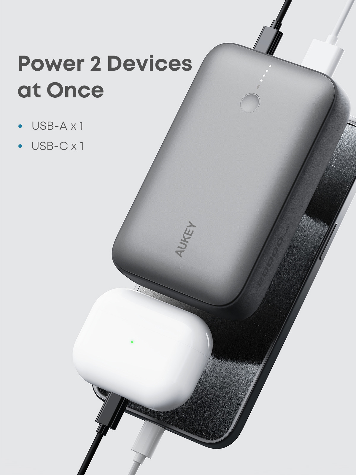 AUKEY Spark Mini 20000, 20W, PD,QC PB-Y57 GR Powerbank, Gray,USB-C,USB-A