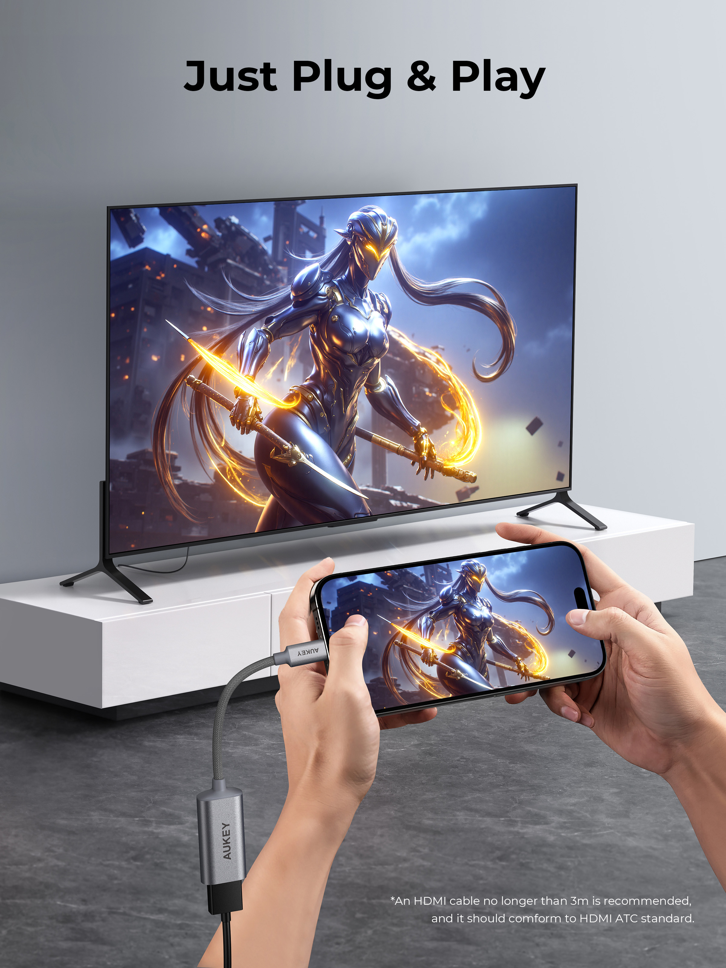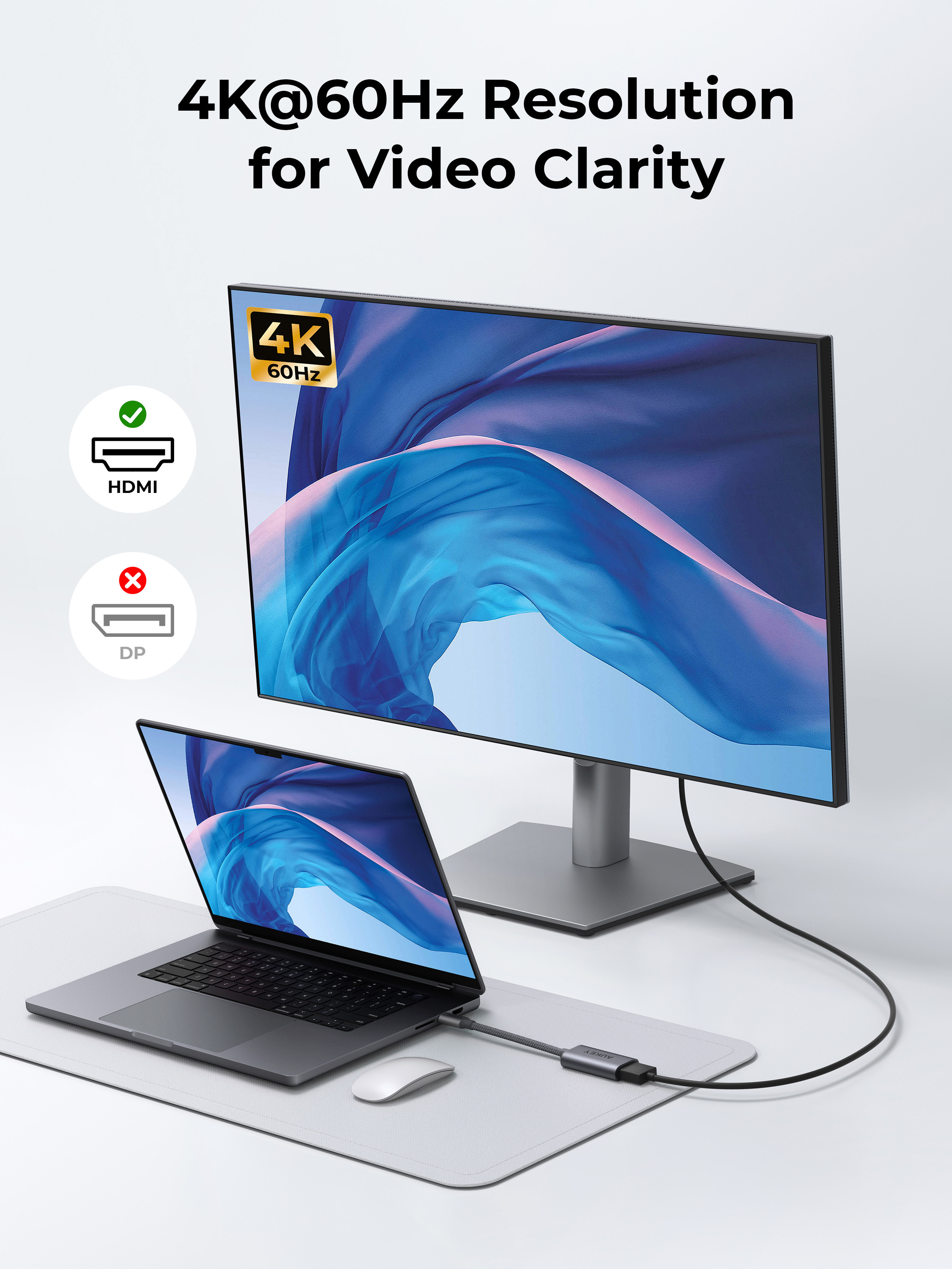 4K@60Hz-Video: Dieses Kabel sorgt dafür, dass Ihre 4K-Inhalte mit 60 Hz wiedergegeben werden, was ein flüssigeres und intensiveres Seherlebnis ermöglicht