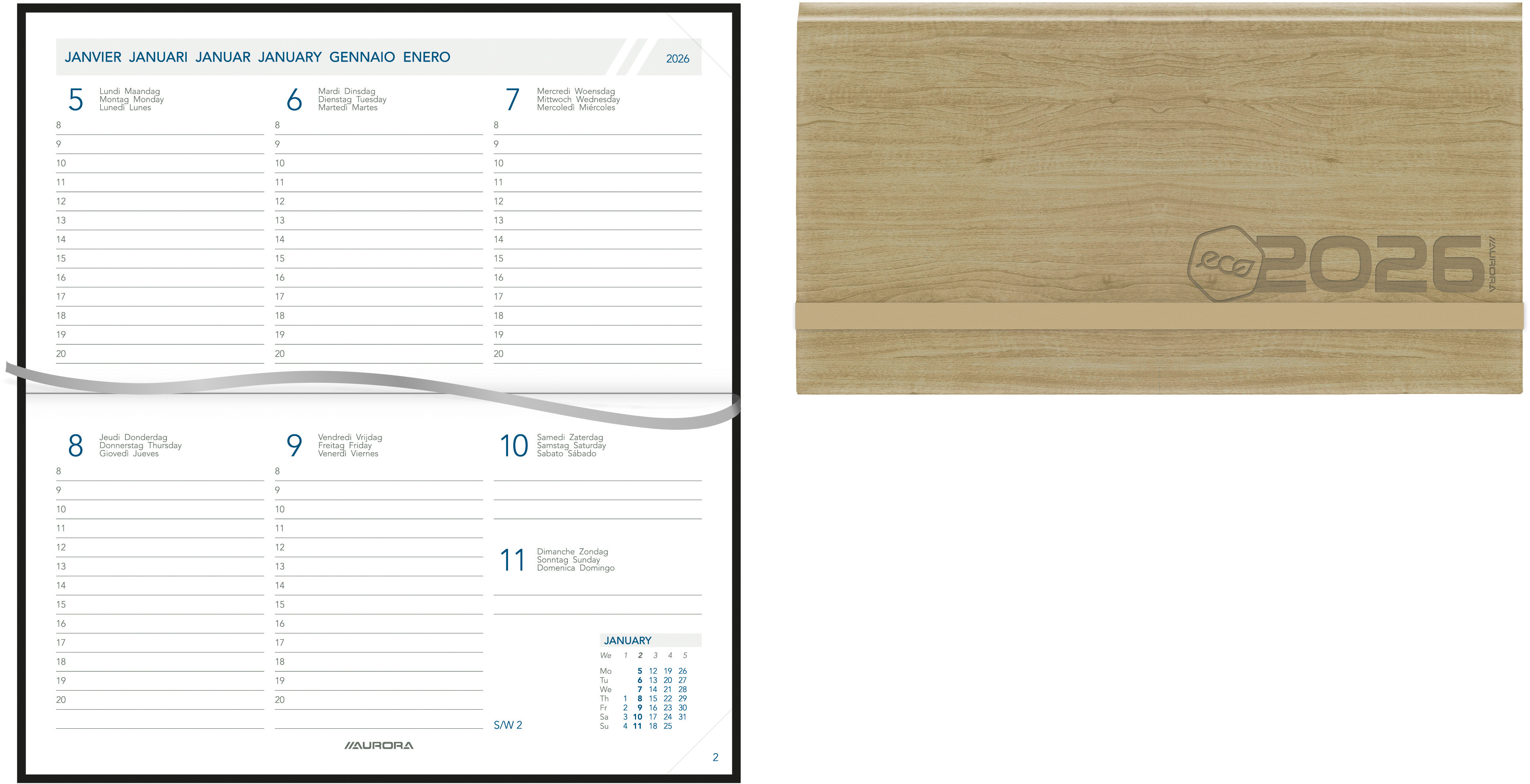 AURORA Agenda Eco Novoplan 2026 1713 1W/2S ass. ML 16.5x9cm