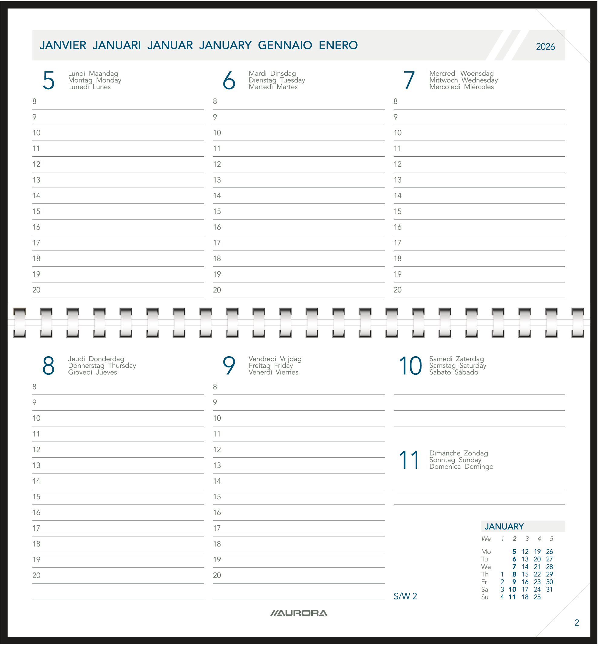 AURORA Agenda Novoplan Pearl 2026 1700P 1W/2S ML 9.4x16.3cm