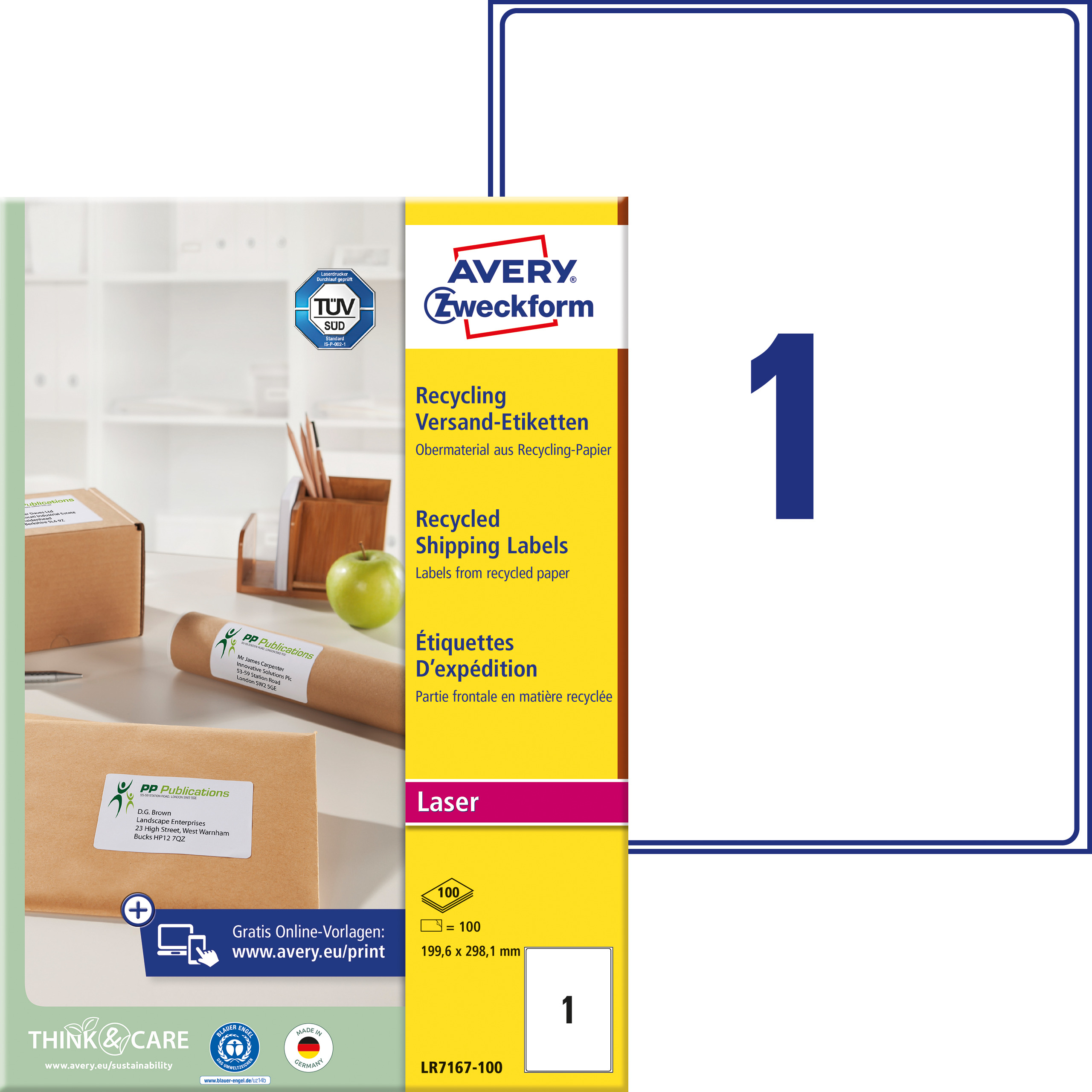 AVERY ZWECKFORM Adressetiketten 199,6x289,1mm LR7167100 recycling 100 Stück