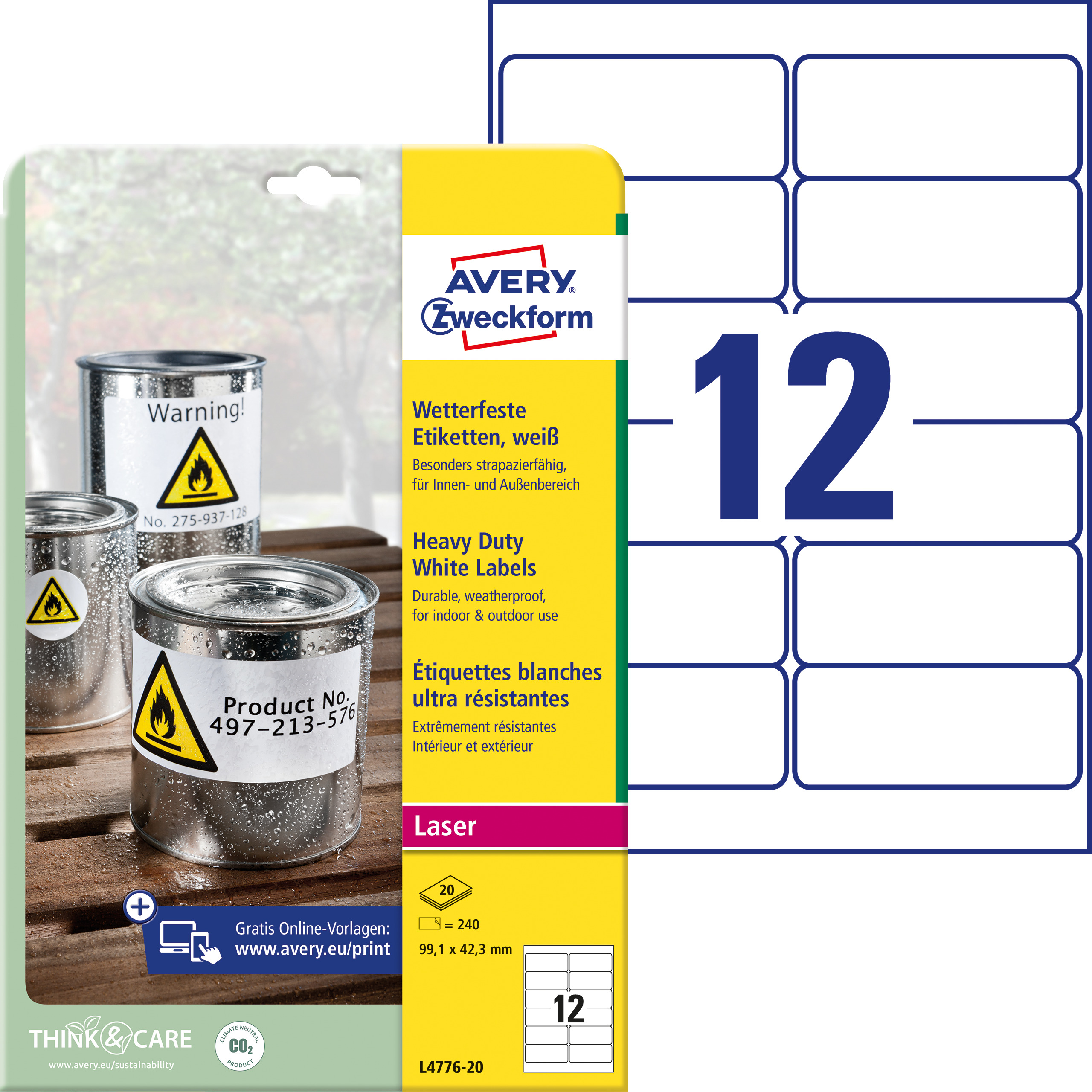 AVERY ZWECKFORM Etiketten 99,1x42,3mm L4776-20 Folie,wetterf. 240 Stk./20Bl.