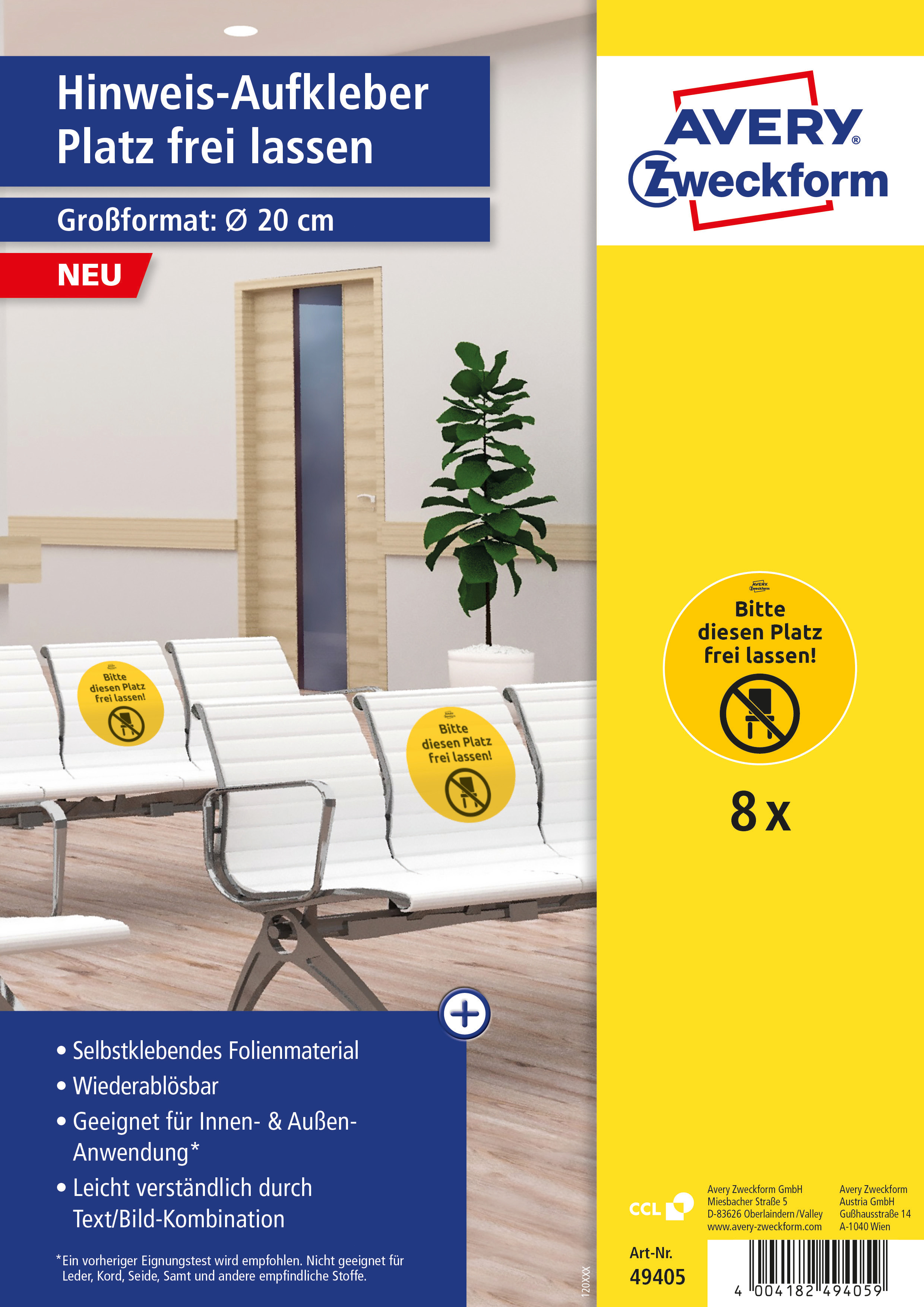 AVERY ZWECKFORM Hinweis-Aufkleber DE 20cm 49405 Platz frei lassen 8 Stück