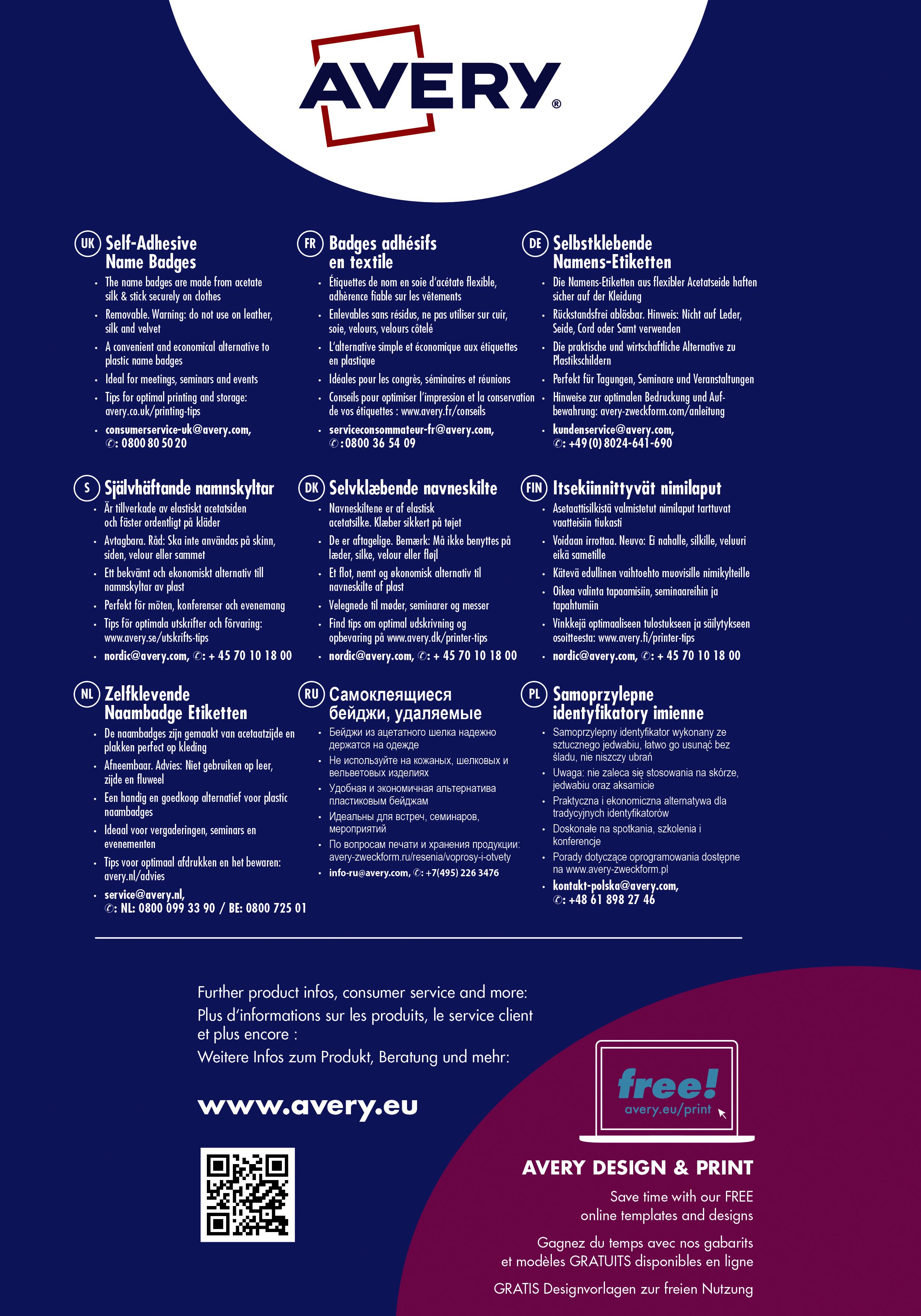 Qualität vom Etiketten-Experten: die selbstklebenden, ablösbaren Namens-Etiketten L4786-20 für Laser-Drucker von Avery Zweckform im Format 80 x 50 mm erleichtern Ihnen die Organisation von Veranstaltungen, Seminaren und Konferenzen. 200 weisse Textil-Etiketten mit rotem Rand auf 20 Bogen. Die rechteckigen Namensschilder sind die perfekte Alternative zu Plastikschildern mit Nadel oder Clip. Die Namensschilder aus Acetatseide haften zuverlässig auf Kleidung und Textilien und lassen sich rückstandsfrei wieder ablösen. Die Rückseiten-Stanzung der Namensschilder erlaubt das einfache Heraustrennen der Namens-Etiketten samt Trägerfolie für eine spätere Verwendung. Die Textil-Etiketten sind nicht geeignet für Leder, Seide, Samt und andere empfindliche Textilien. Die Namens-Etiketten bieten einen garantiert staufreien Druckerdurchlauf auf allen gängigen Laser-Druckern. So arbeiten Sie effizient wie stressfrei und schaffen sich wertvolle Zeit für die wirklich wichtigen Dinge. Ideen drucken - einfach & professionell: mit Etiketten von Avery Zweckform können Sie den kostenlosen Online Etiketten-Designer unter www.avery.eu/print nutzen. Gestalten Sie Ihr Etikett mit der Software komplett selbst, verwenden Sie eine der Design-Vorlagen zu zahlreichen Themen, die Sie individuell anpassen können oder laden Sie Ihr fertiges Design hoch und drucken anschliessend standgenau aus. So schnell und einfach sorgen Sie für einen professionellen Auftritt. Think & Care - Avery Zweckform ist seit 2020 klimaneutral: die Treibhausgasemissionen des Standortes werden durch zertifizierte Klimaschutzprojekte ausgeglichen. Schon seit 2014 wird ausschliesslich Ökostrom/-gas verwendet. Forschung, Entwicklung, Produktion, Logistik und Verwaltung am Firmenstandort in Oberlaindern/Bayern garantieren höchste Qualitäts- und Umweltstandards sowie kurze Lieferwege. Die Etiketten aus PVC-freier Acetatseide werden klimaneutral hergestellt, die Emissionen des Materials werden kompensiert. Made in Germany.