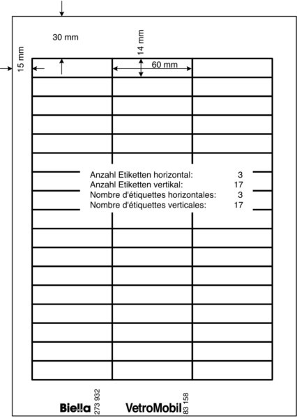 BIELLA Hängemappen-Etiketten 60x14mm 27393200U weiss 5 Blatt à 51 Stück