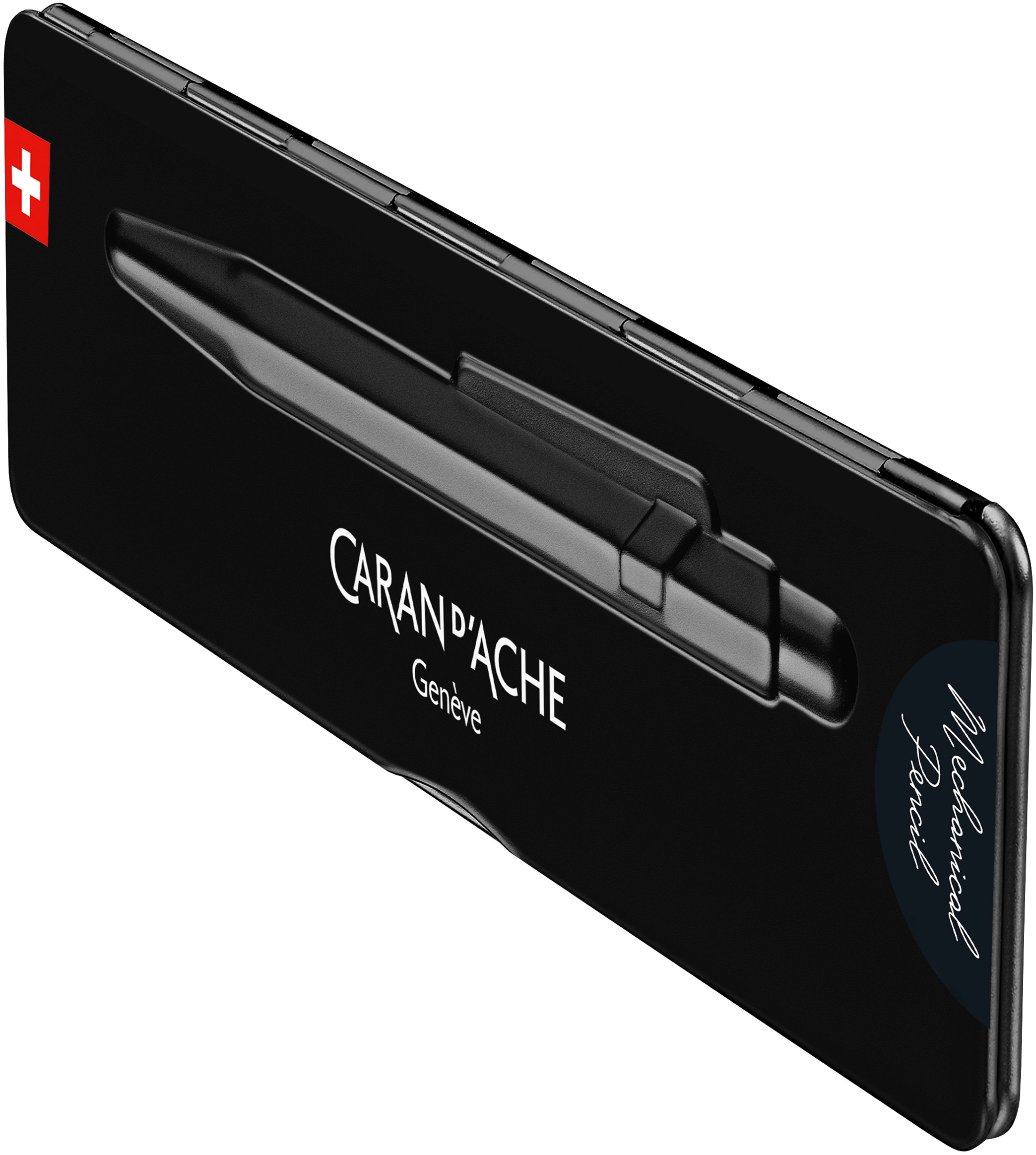 Der hochwertige Minenhalter ist ein wahrer Blickfang. Mit seiner Graphitmine sorgt er für eine klare und gleichmässige Handschrift. Der sechseckige, lackierte Schaft mit einer Länge von 19,9 cm gleitet angenehm über das Papier und liegt perfekt in der Hand. Der abgefederte Präzisions-Druckmechanismus ist besonders praktisch und ermöglicht es, die Spitze schnell und einfach zu versenken. Ausgestattet ist der Bleistift mit einer 0,7 mm Graphitmine in den Härtegraden HB und B sowie einem Radiergummi im Kappenkopf. Die dezente Gravur des Markennamens Caran d'Ache macht diesen formschönen Minenhalter zu einem hochwertigen Alltagsbegleiter.