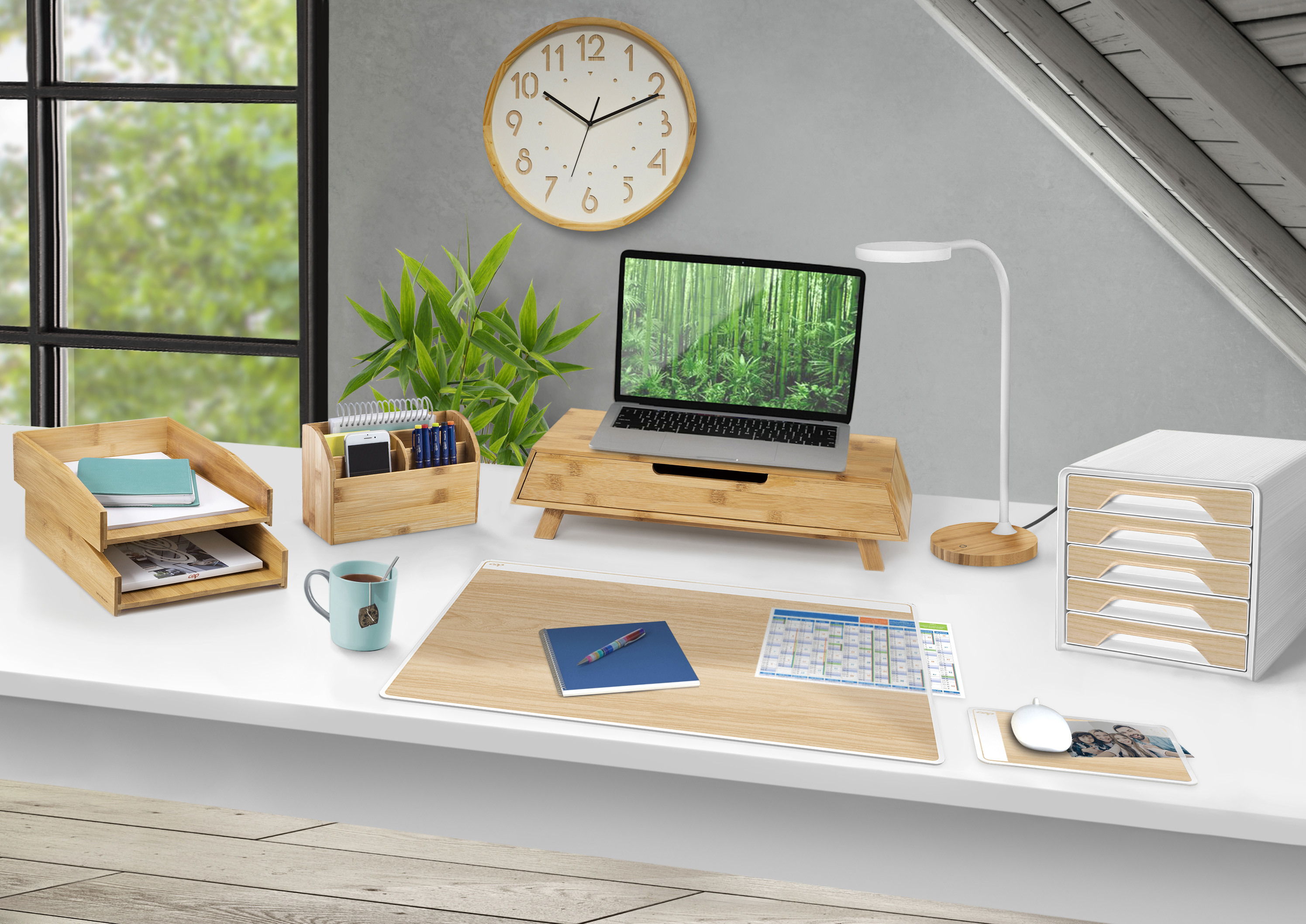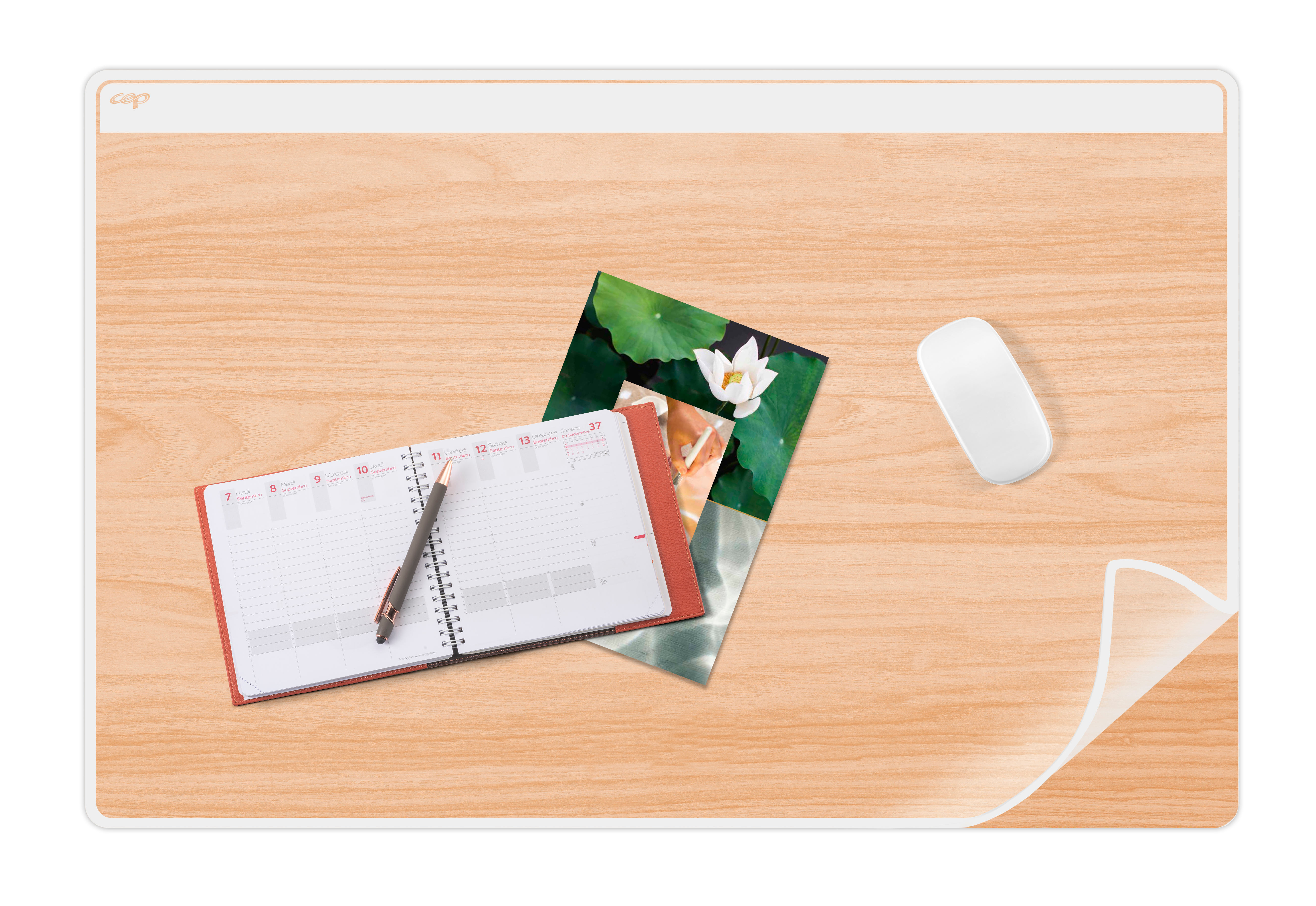 Diese schöne Schreibunterlage in Buche Optik sorgt im Handumdrehen für Ordnung und Übersicht auf dem Schreibtisch. Die Unterlage ist mit einer extrem reflexarmen und transparenten PVC Oberseite ausgestattet, wodurch Sie jederzeit freie Sicht auf die eingelegten Dokumente, Telefonnummer oder sonstige wichtige Notizen haben. Mit rutschfester Schaumstoff-Unterseite Für alle Mäuse geeignet Abwischbar Aus phthalatfreiem PVC. Mit umweltfreundlichen, lösungsmittelfreien Druckfarben bedruckt, Greenguard Gold zertifiziert. Abmessungen: 585 x 385x 2 mm.