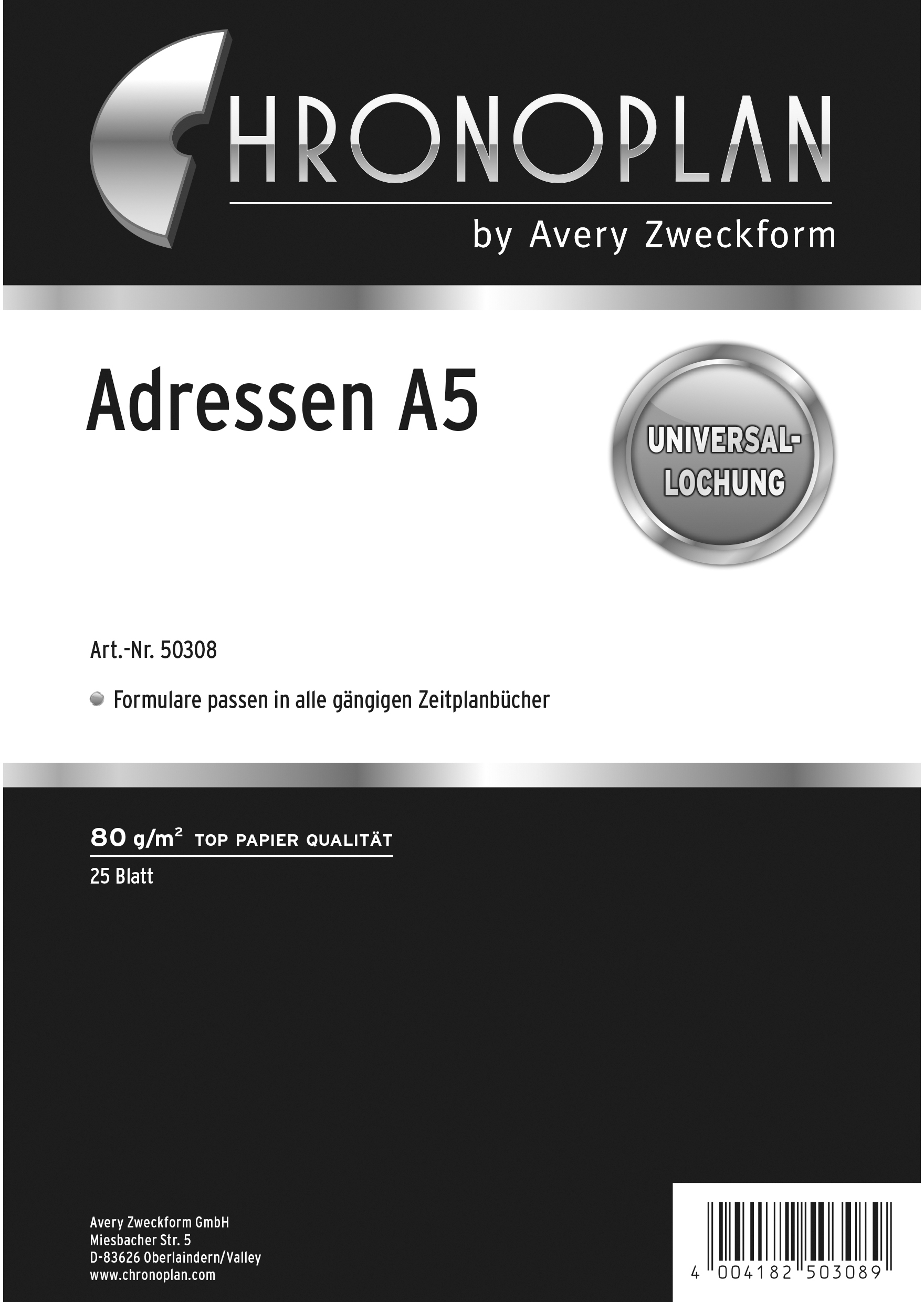 CHRONOPLAN Adressen 50308Z.26 25 Blatt A5