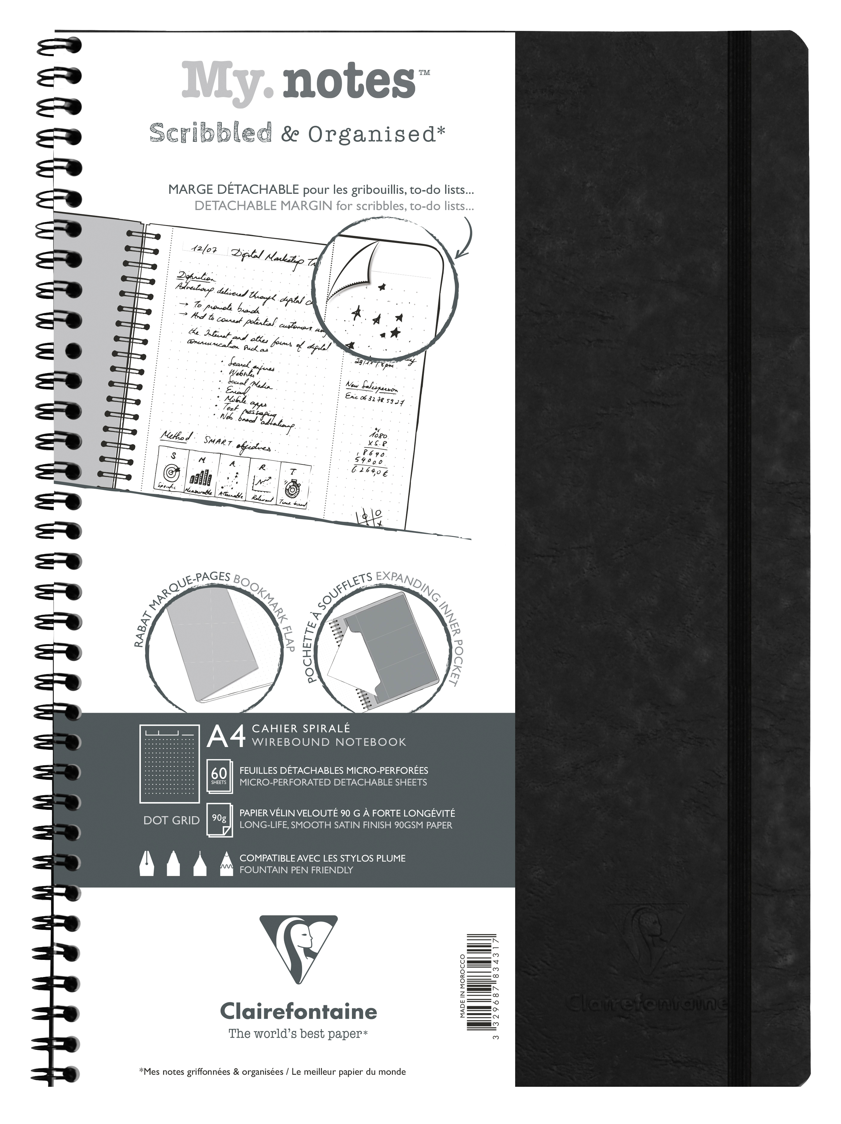 Clairefontaine, My.Notes Age Bag, Spiralheft A4, 60 Blatt 90g, DOT mit Kopfleiste, abtrennbar, mikroperforiert Heft mit abtrennbaren Rändern, um schlauer und organisierter zu kritzeln. Kritzeln Sie etwas am Rand (eine Telefonnummer bei einem A nruf, Kalku