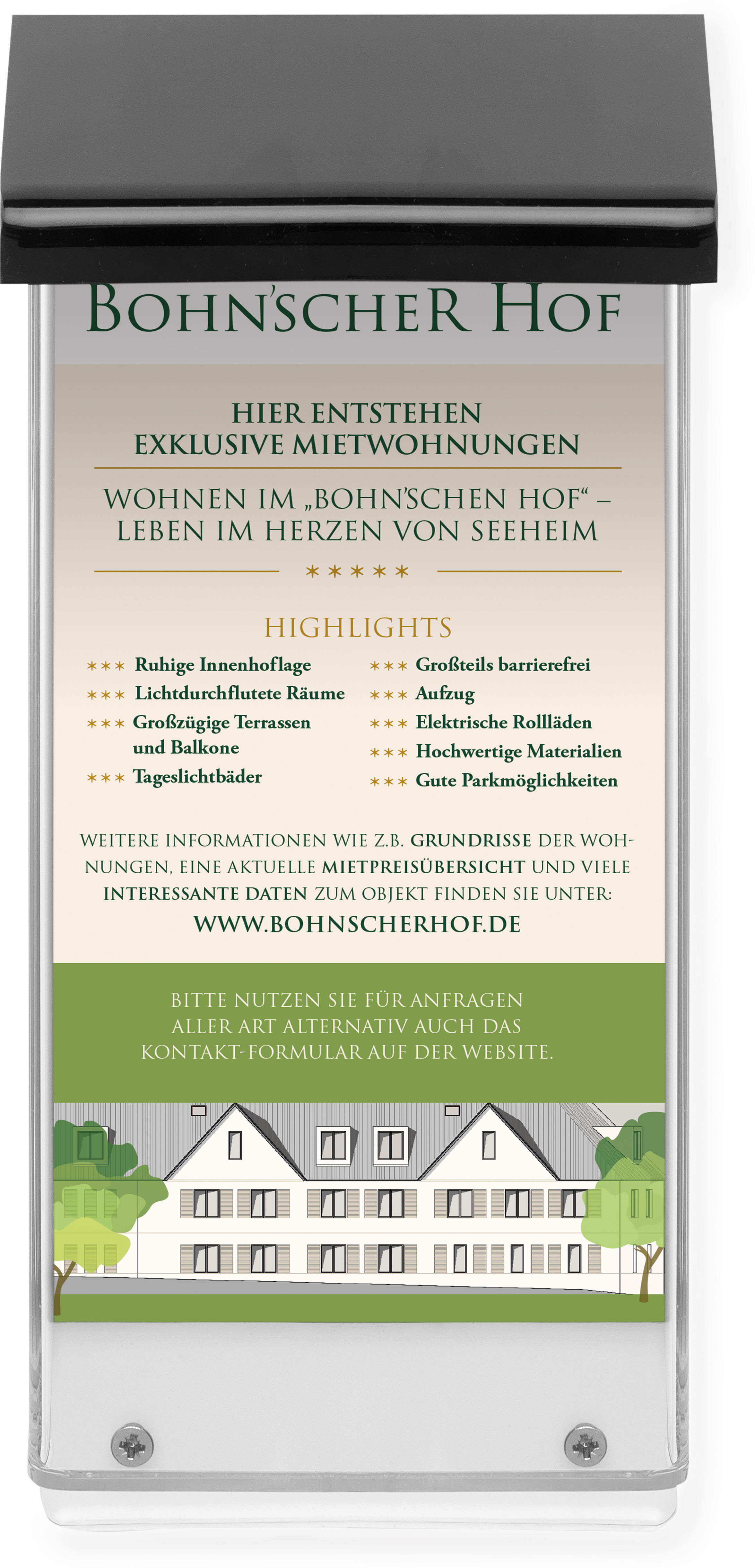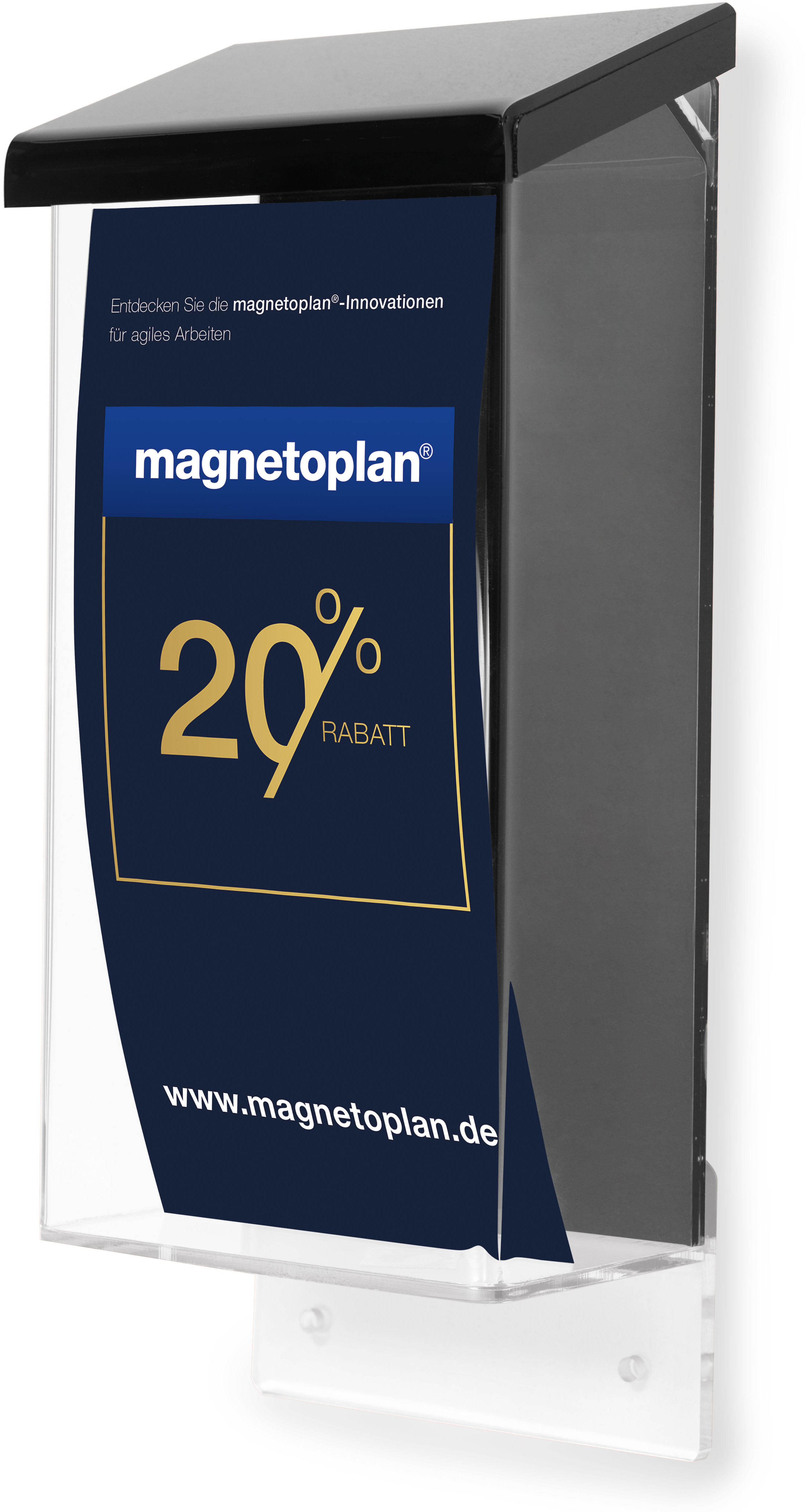 UV-geschützte + wetterbeständige Prospektboxen, auch zur Befestigung an Pfosten. Material: Polymethylmethacrylat.