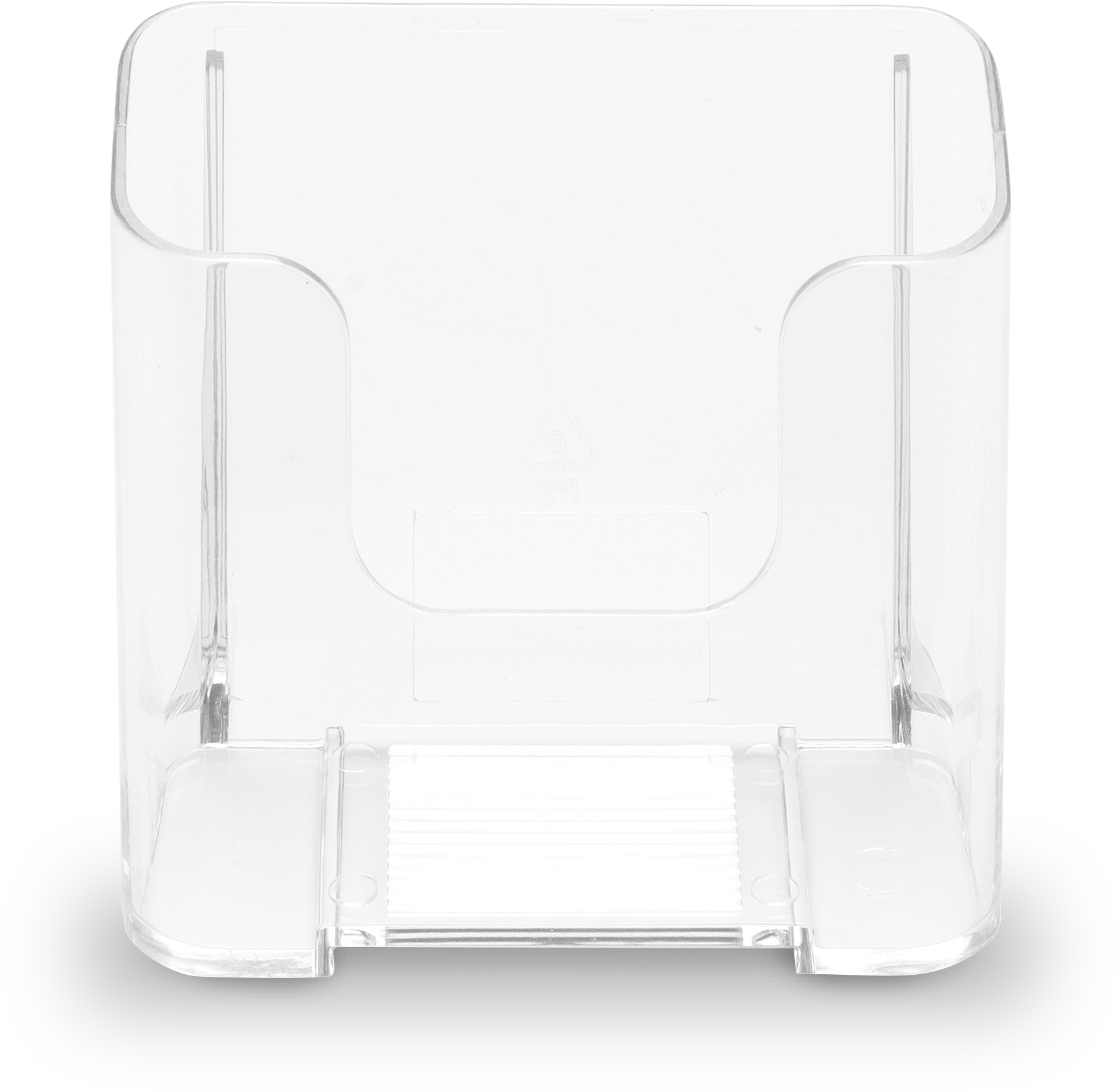 Freistehender Tischständer mit niedriger Rückwand und abgerundeten Kanten. Abgeschrägt, für eine stabile Präsentation. So haben Sie Prospekte und Kataloge glasklar im Blickfeld. Material: Polystyrol. Grösse: 1/3, Hochformat, 115 x 100 x 85 mm (B x H x T).
