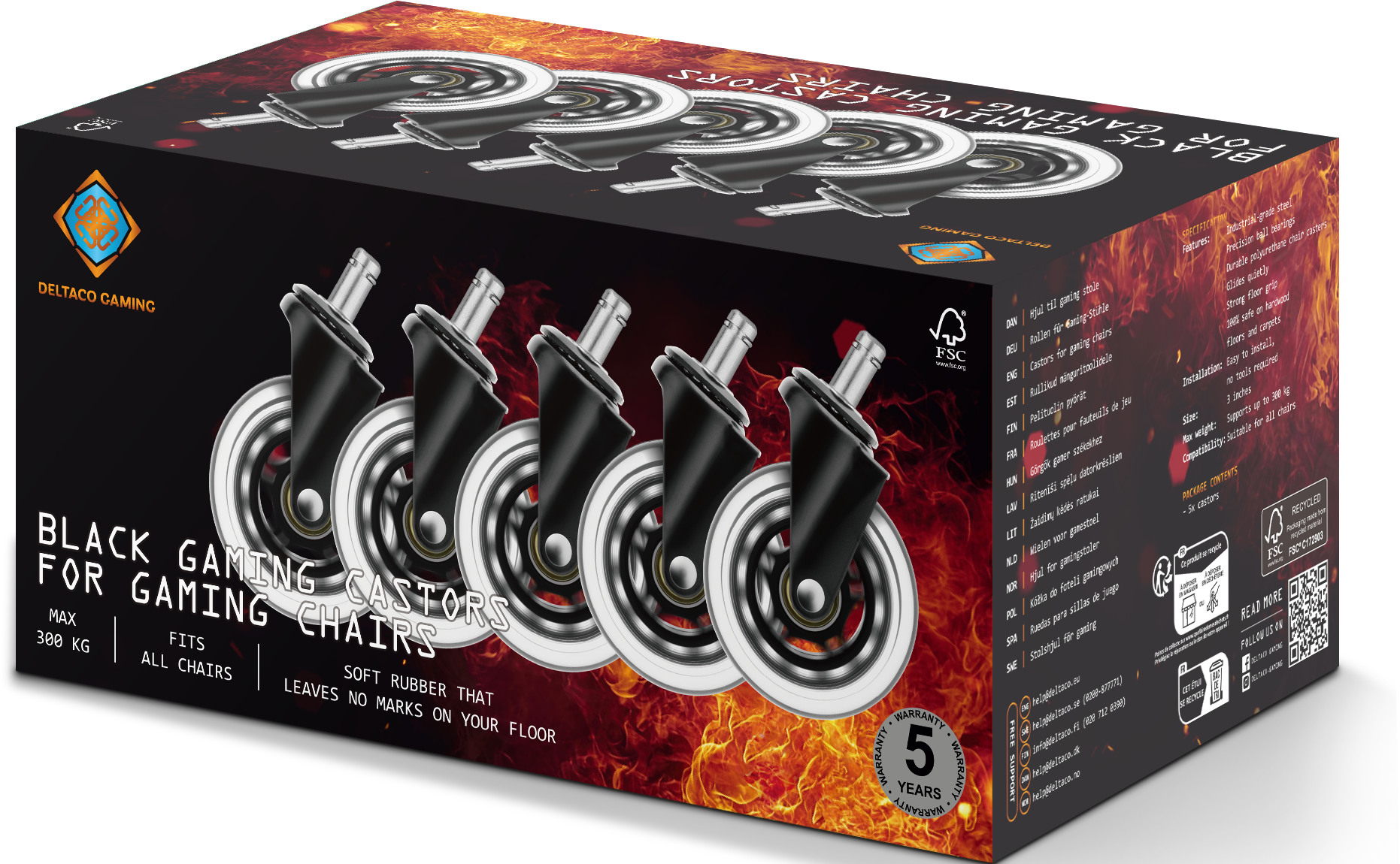 DELTACO Casters, Wheels, 5-pack GAM-157 Dark Line