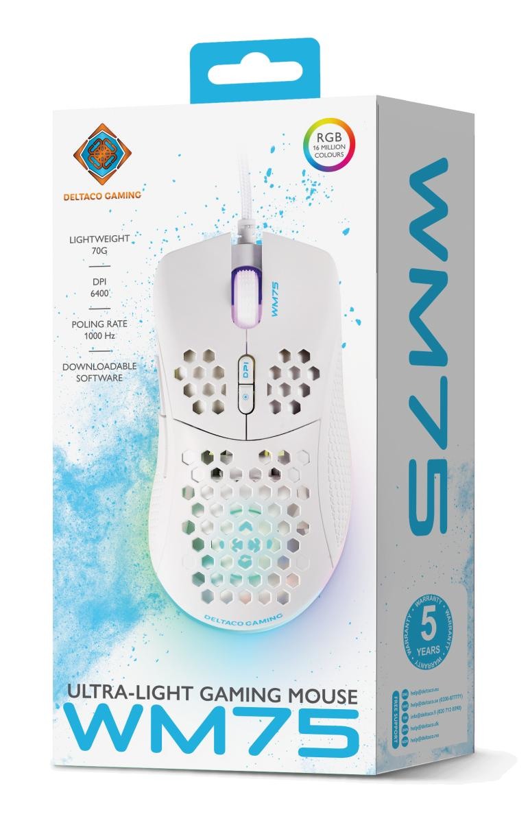 DELTACO Lightweight Gaming Mouse,RGB GAM-108-W White, WM75