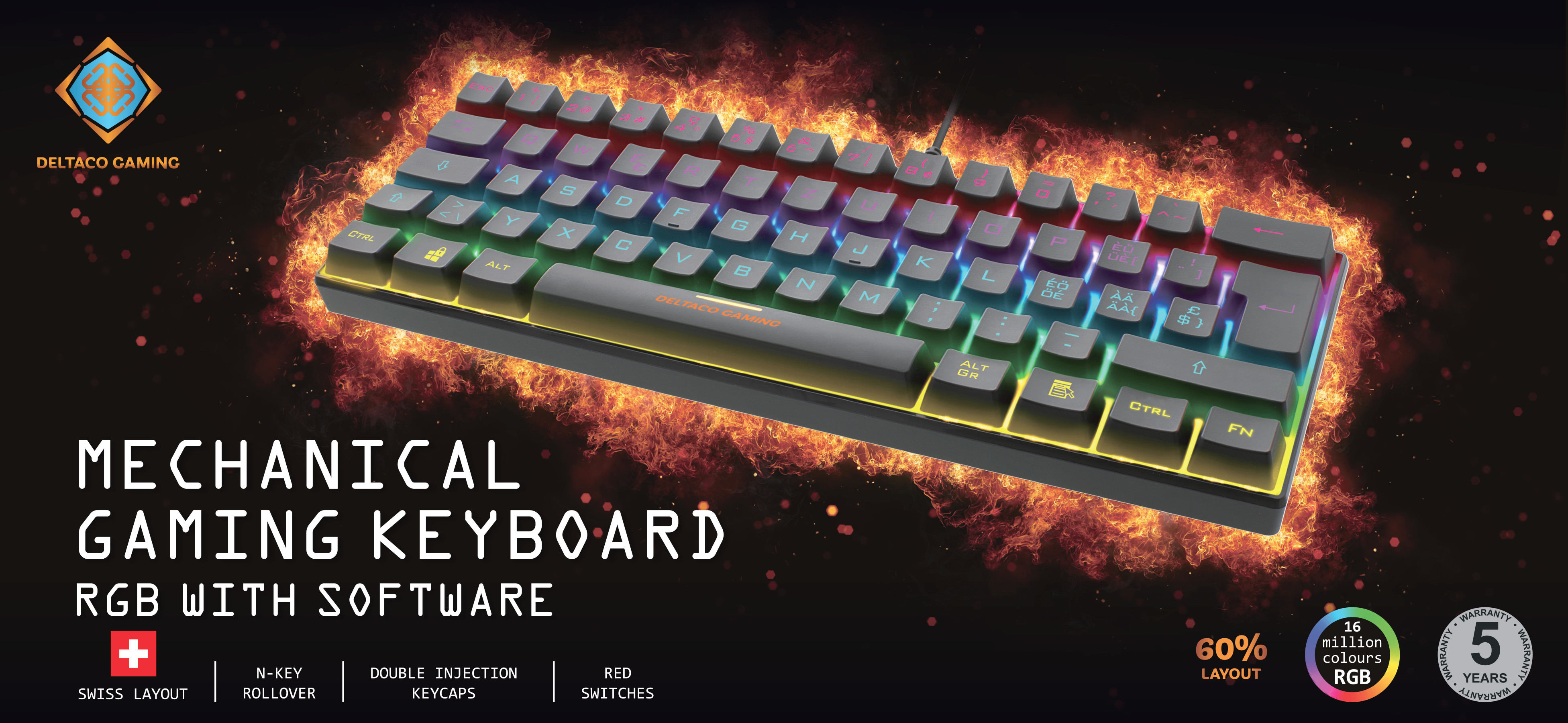 Produktinformationen "DELTACO TKL Gaming Keyboard mech RGB GAM-075-CH red switch, CH-Layout, black"
