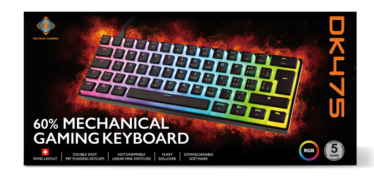 DELTACO TKL Gaming Keyboard v2 RGB GAM-075V2-CH Hot-Swap,CH-Layout,Black