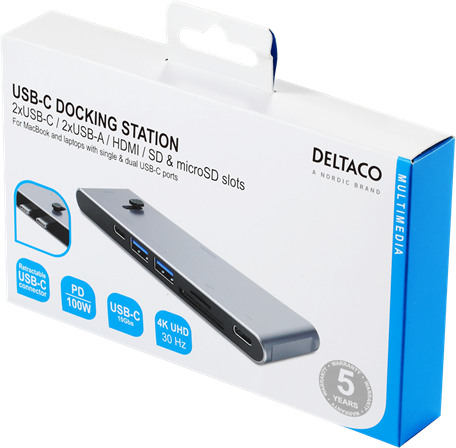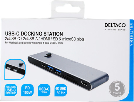 Produktinformationen "DELTACO USB-C Dockingsstation USBC-HDMI21 2xUSB-C,2xUSB-A,(mic)SD,HDMI"
