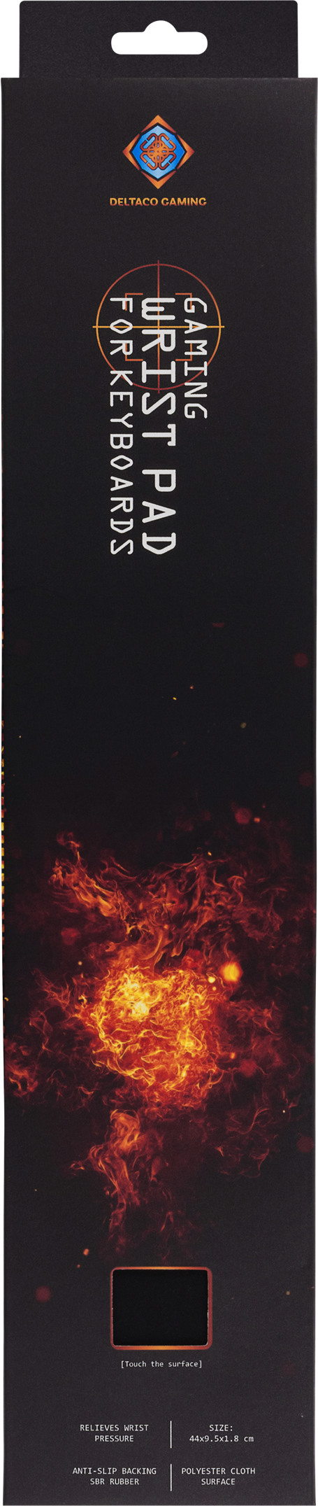 Handgelenkstütze, entwickelt von und entwickelt für Spieler, die mechanische Tastaturen verwenden, die oft etwas höher sind als herkömmliche Tastaturen. Die Oberfläche hat eine weiche Polyesterpolsterung, die es Ihren Handgelenken ermöglicht zu atmen, während sie darauf ruhen. Die Unterseite hat eine gummierte Oberfläche, um die Handgelenkstütze an Ort und Stelle zu halten.