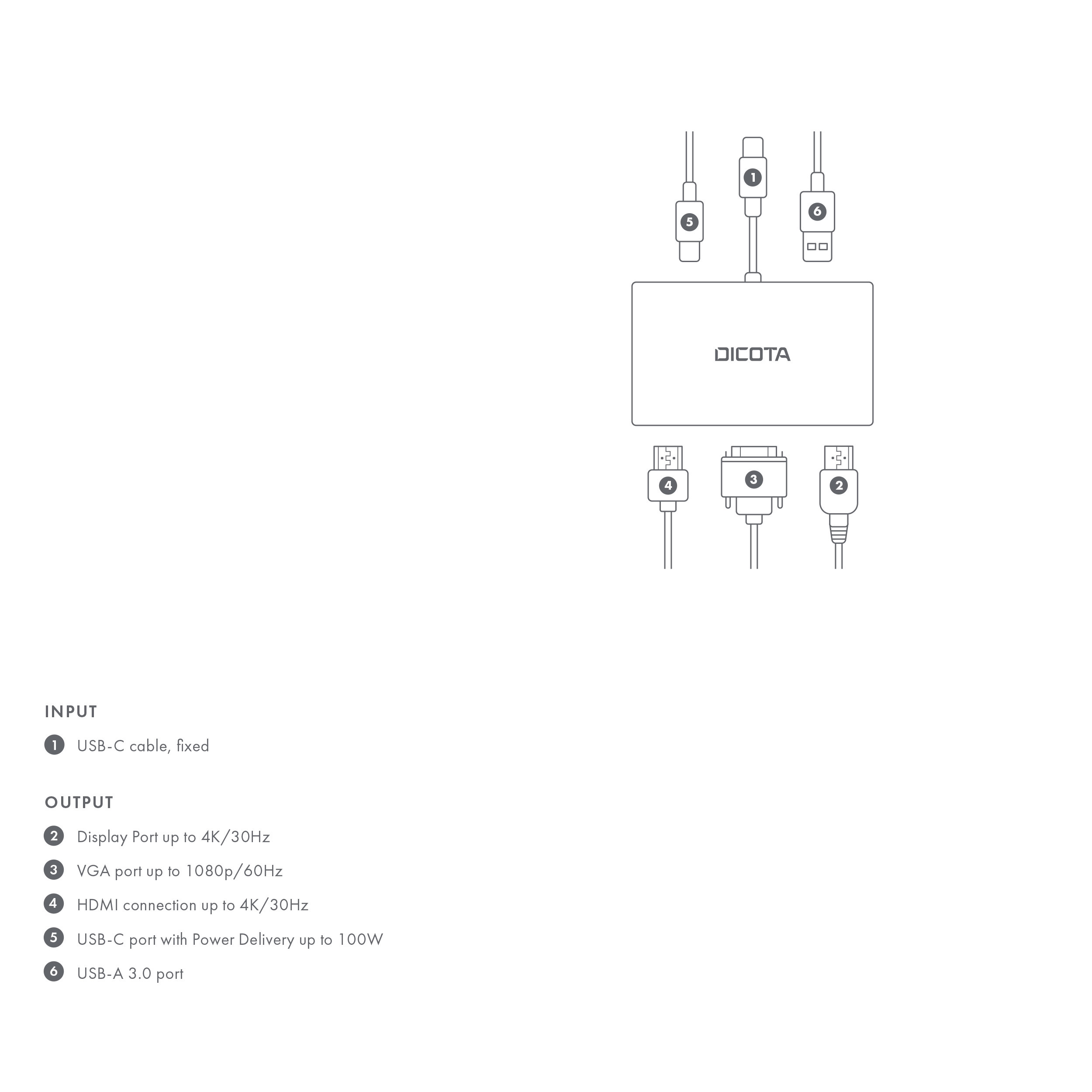 Produktinformationen "DICOTA Docking Station 5-in-1 USB-C D32064 4K HDMI/DP PD 100W portable"