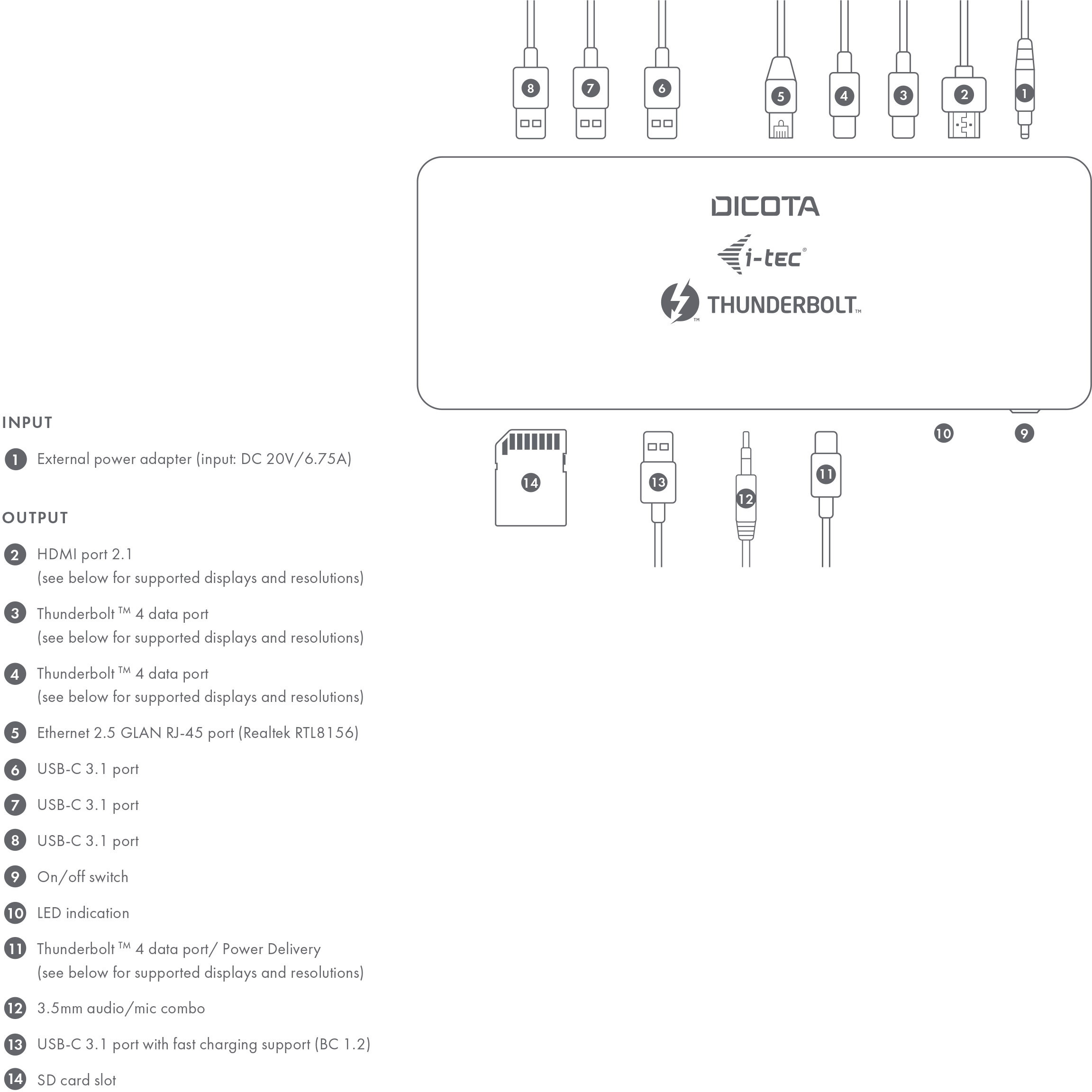 Produktinformationen "DICOTA USB-C TB4 10in1 DockingStation D32006-CH 8K HDMI/TB4 PD 96W 2.5G black"