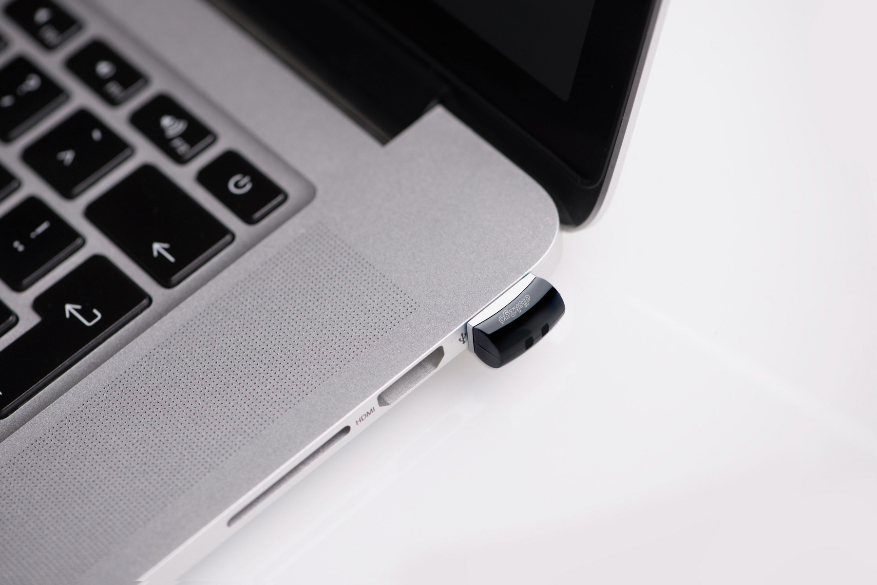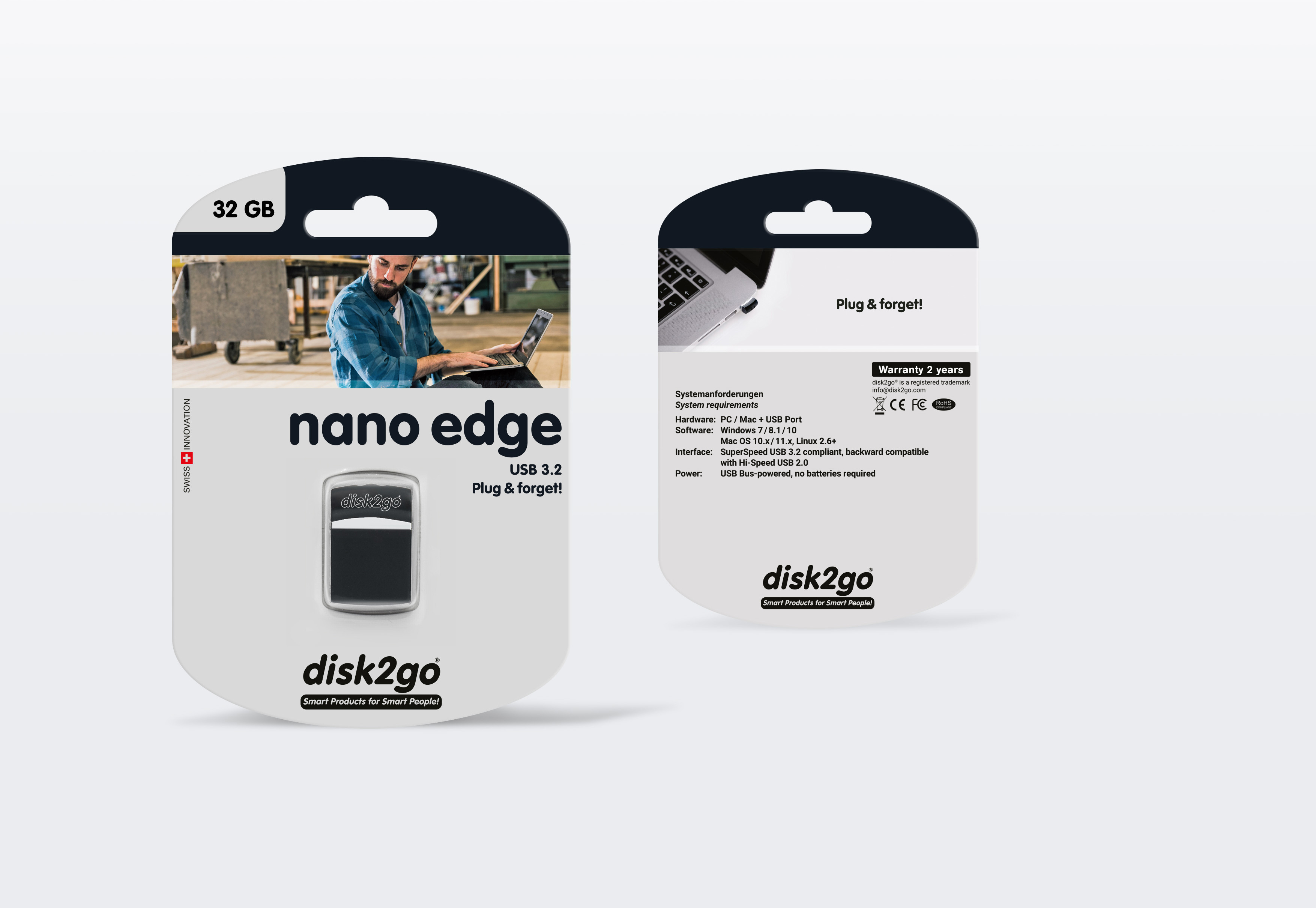 Mit den Abmessungen, welche in etwa denjenigen eines Einfränklers entsprechen, macht der disk2go nano seinem Namen aller Ehre. Bei einem so kleinen USB-Speicher stellt sich natürlich die Frage, ob dieser nicht plötzlich in der Hosentasche verloren geht? Aus diesem Grund empfehlen wir, den USB-Speicher permanent im USB-Slot stecken zu lassen und bei Bedarf zu entfernen.