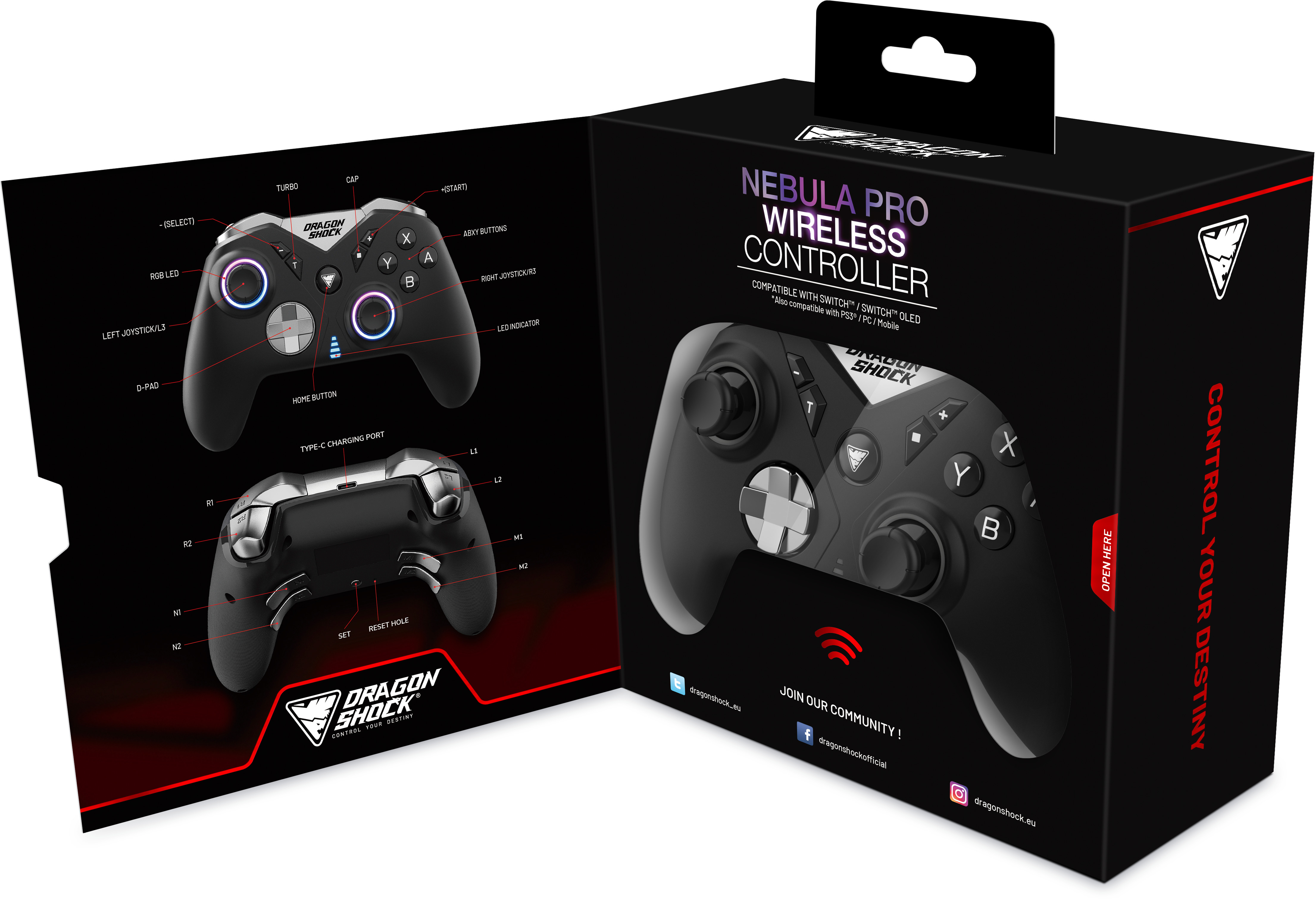 DRAGONSHOCK DS NEBULA PRO Wireless Ctrl. DSCPNSW-BK NSW, Black