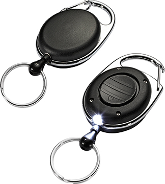 Ovales Jojo in ansprechendem Design. Mit Metallclip-Befestigung und Schlüsselring. Mit starker LED-Lampe.