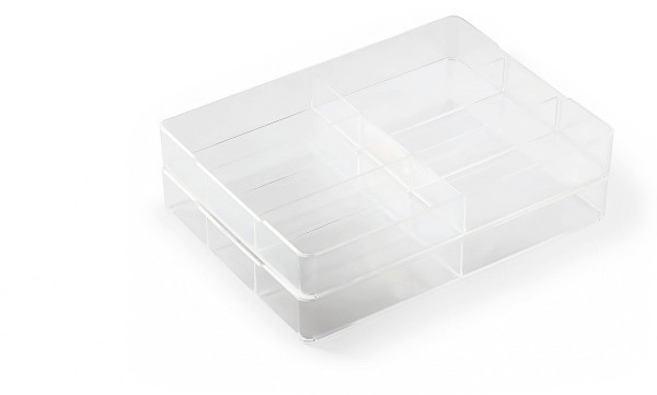 Der glasklare Schubladeneinsatz für die COFFEE POINT Catering Box eignet sich optimal für die Sortierung und Aufbewahrung von Besteck und sonstigem Zubehör von Kaffeestationen. Die stapelbare Ablage ist lebensmittelecht und leicht zu reinigen.