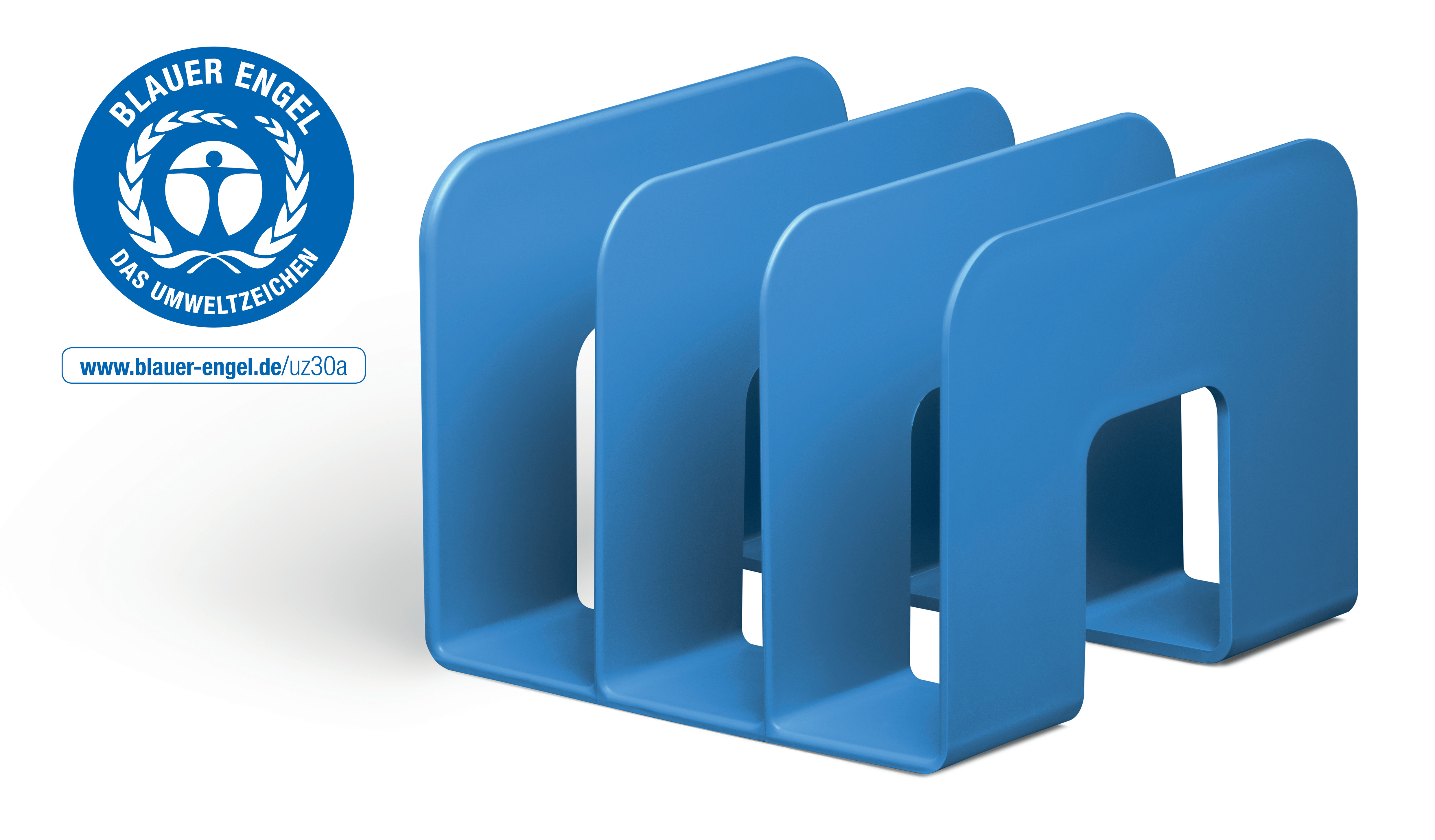 Katalogsammler mit drei Fächern für Zeitschriften und Broschüren. Der Artikel trägt das Umweltzeichen Blauer Engel.