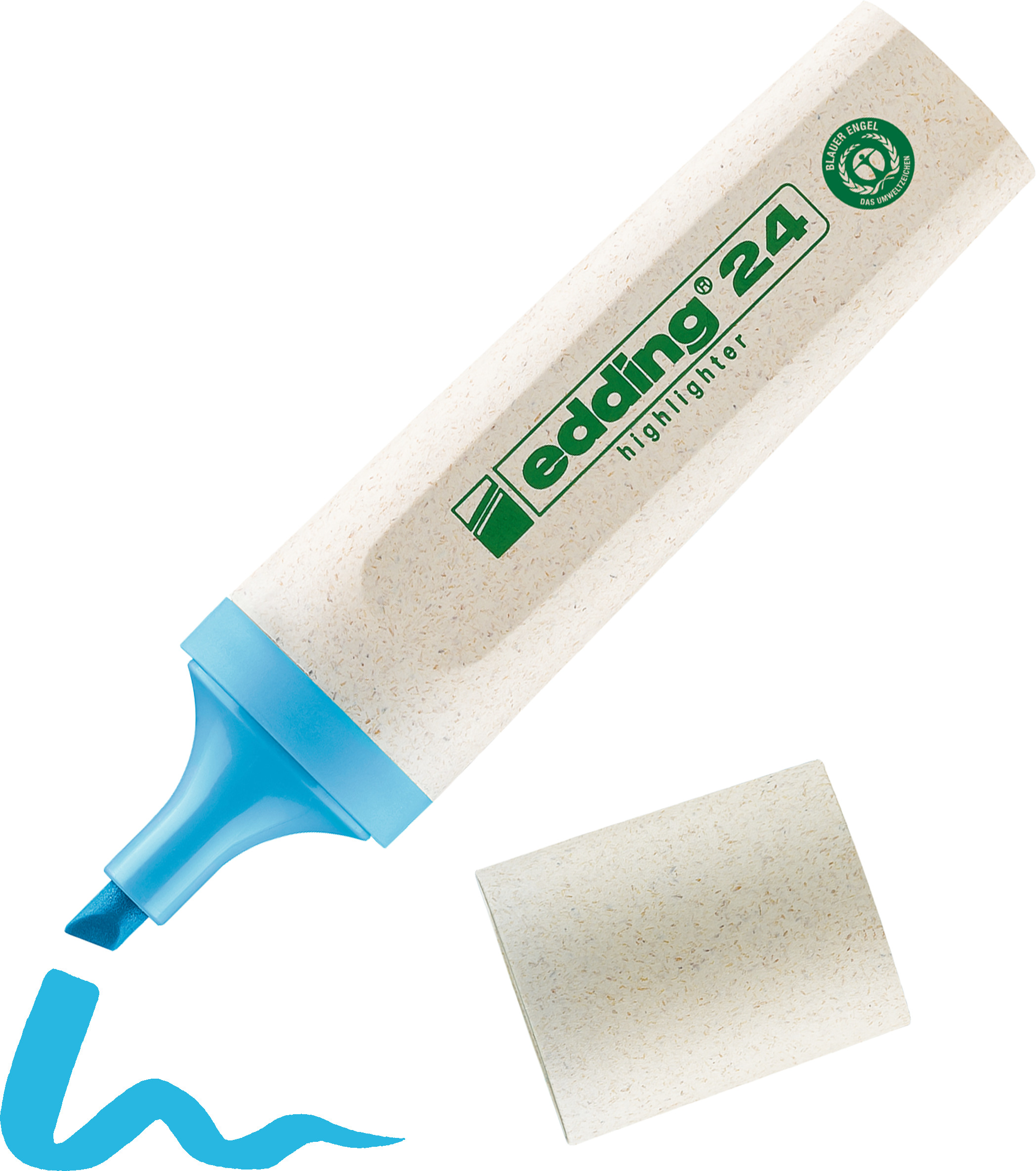 Der edding 24 EcoLine Textmarker, der zu mindestens 90% aus nachwachsenden Rohstoffen besteht, wurde mit dem Umweltsiegel Blauer Engel ausgezeichnet. Er kann nachgefüllt und mehrfach wiederverwendet werden, was ihn nicht nur umweltfreundlich, sondern auch wirtschaftlich sinnvoll für Büros oder Bildungseinrichtungen macht. Die brillante Neontinte ist auf Wasserbasis, leuchtet farbintensiv und drückt nicht auf die nächste Seite durch.